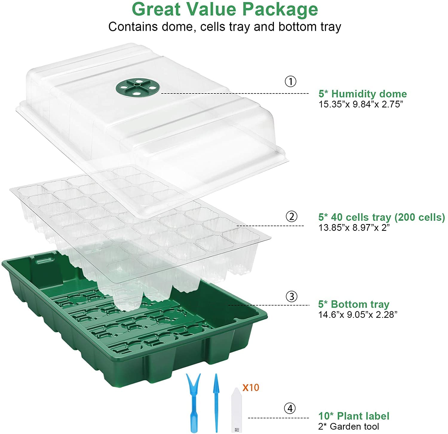 - 🍀【What You Get】MIXC Seed Starter Tray contains: 5 x seed tray, 5 x bottom tray, 5 x humidity dome, 2 x garden tools, 10 x plant labels (A must have for seedling) which creates a moist and warm environment needed for reliable seed germination
