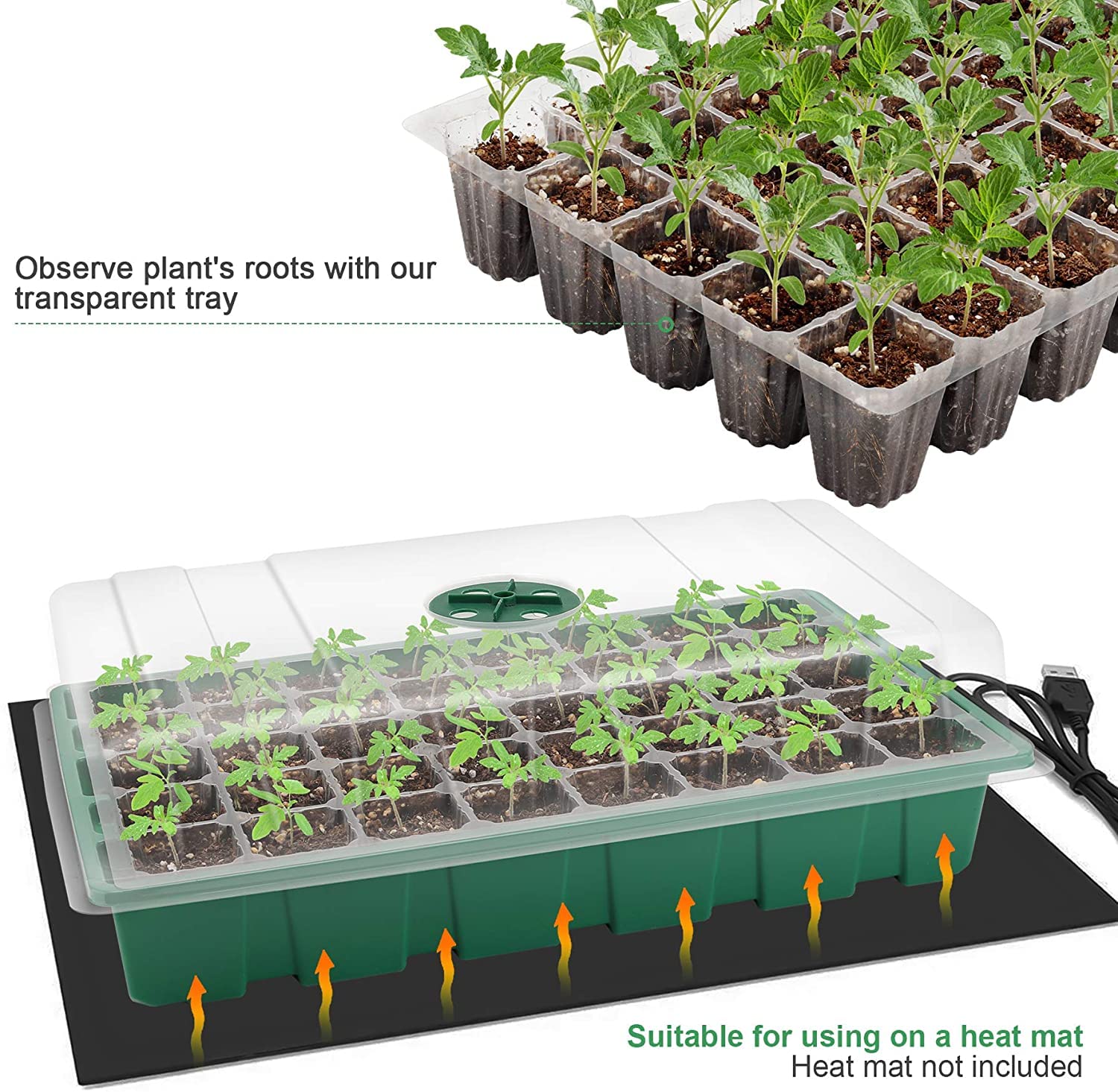 - 🍀【Big Size】Please read the size of each parts carefully. Cells size: 1.5"x 1.5"x 2"(suitable for small seeds); Dome height: 2.75"; Product size: 14.6"x 9.84"x 5.1"