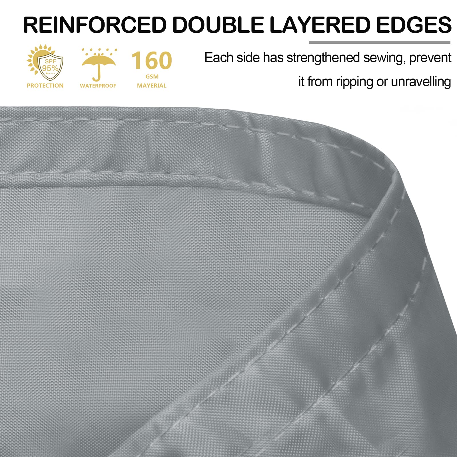 - MULTIFUNCTIONAL: Double stitched edges and reinforced corners, making both sides more robust. Our solar sail is suitable to be used in garden, backyard, patio, courtyard, carport, pergolas, swimming pool, balcony, terrace, camping trip, lawn or another outdoor area. Protecting your privacy safe.