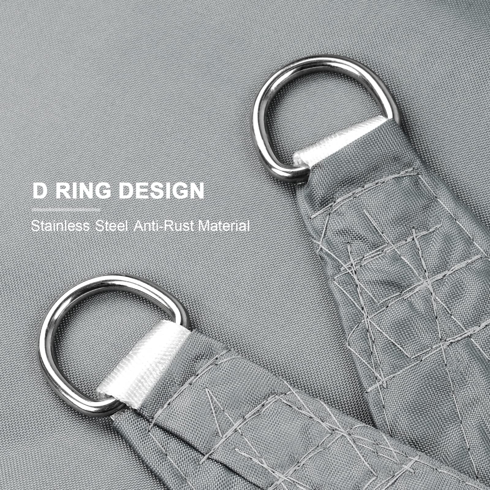 - EASY TO INSTALL: Anti-rust D-ring is placed at the edge of the four corners, you can use ropes or fixing kits easily to fix it. We recommend that you adjust the angle of the garden shade sail to 20-40 degrees, it needs a certain angle to drain the rain to avoid damage the product due to excessive water.