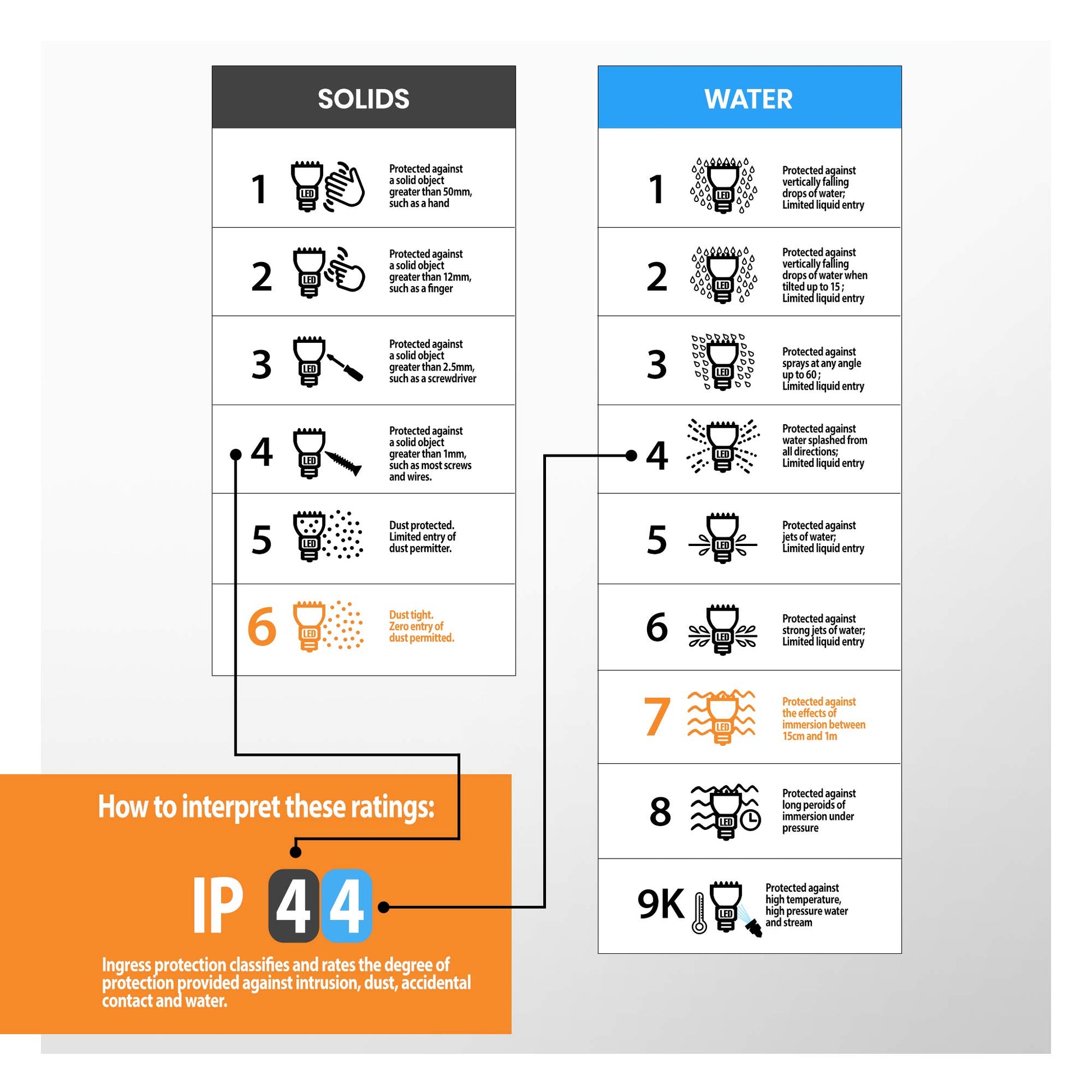 ✓ IP44 Rated: Suitable for indoor or outdoor use