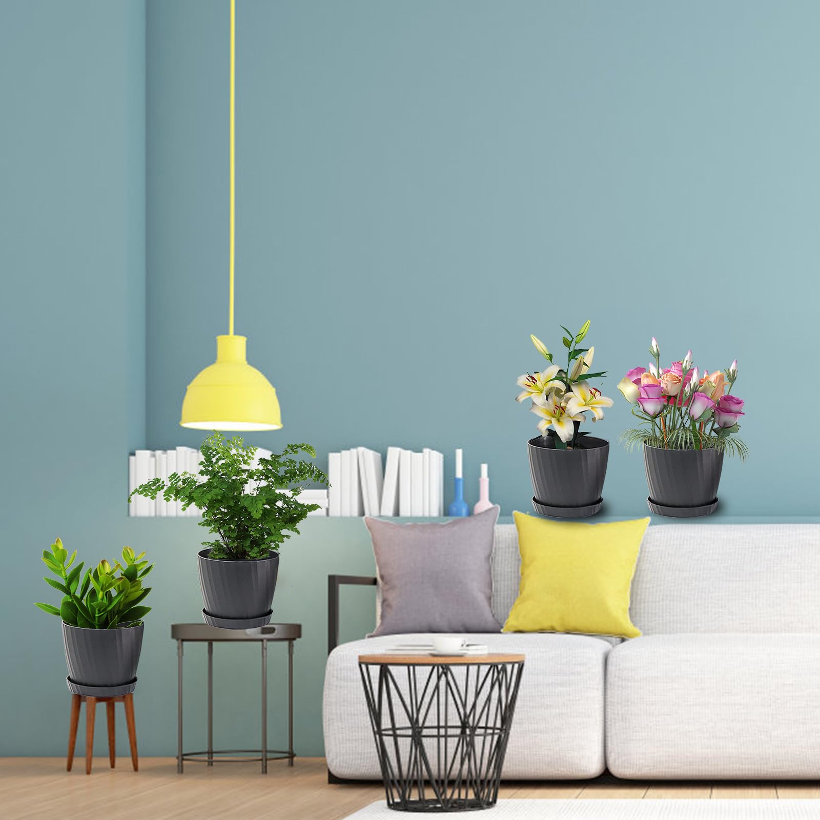 - 【Lightweight and Durable】 And plastic planters retain moisture for nearly double the time of clay planters. It more suitable for the people who often forget to water. Made of lightweight but super durable premium plastic, flower pots will better withstand breakages and drops. The planters are very sturdy, light weight, meanwhile with a rich look and feel. They're weather resistant and UV resistant and the features avoid color fading over time. It's best choice for indoor & outdoor decor.