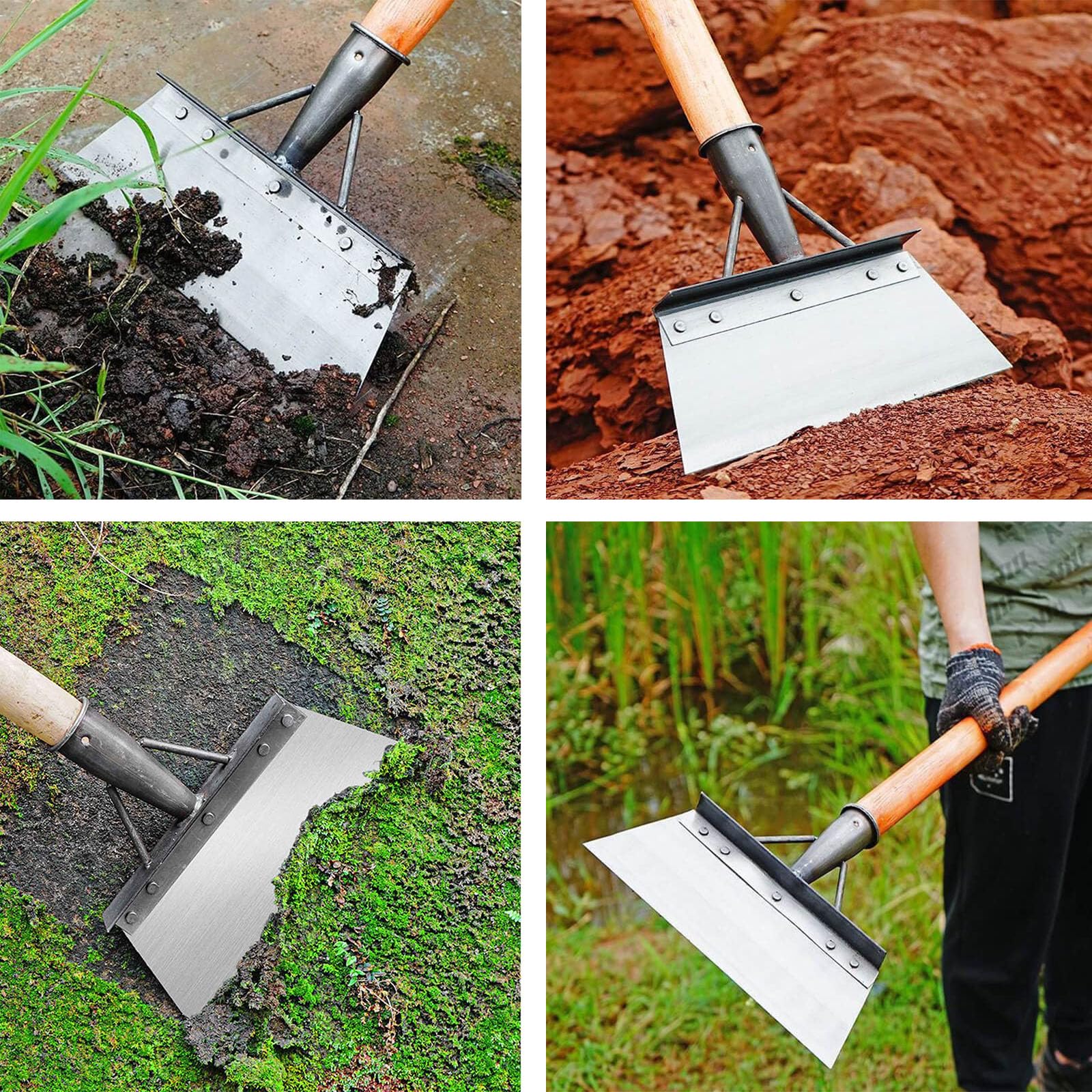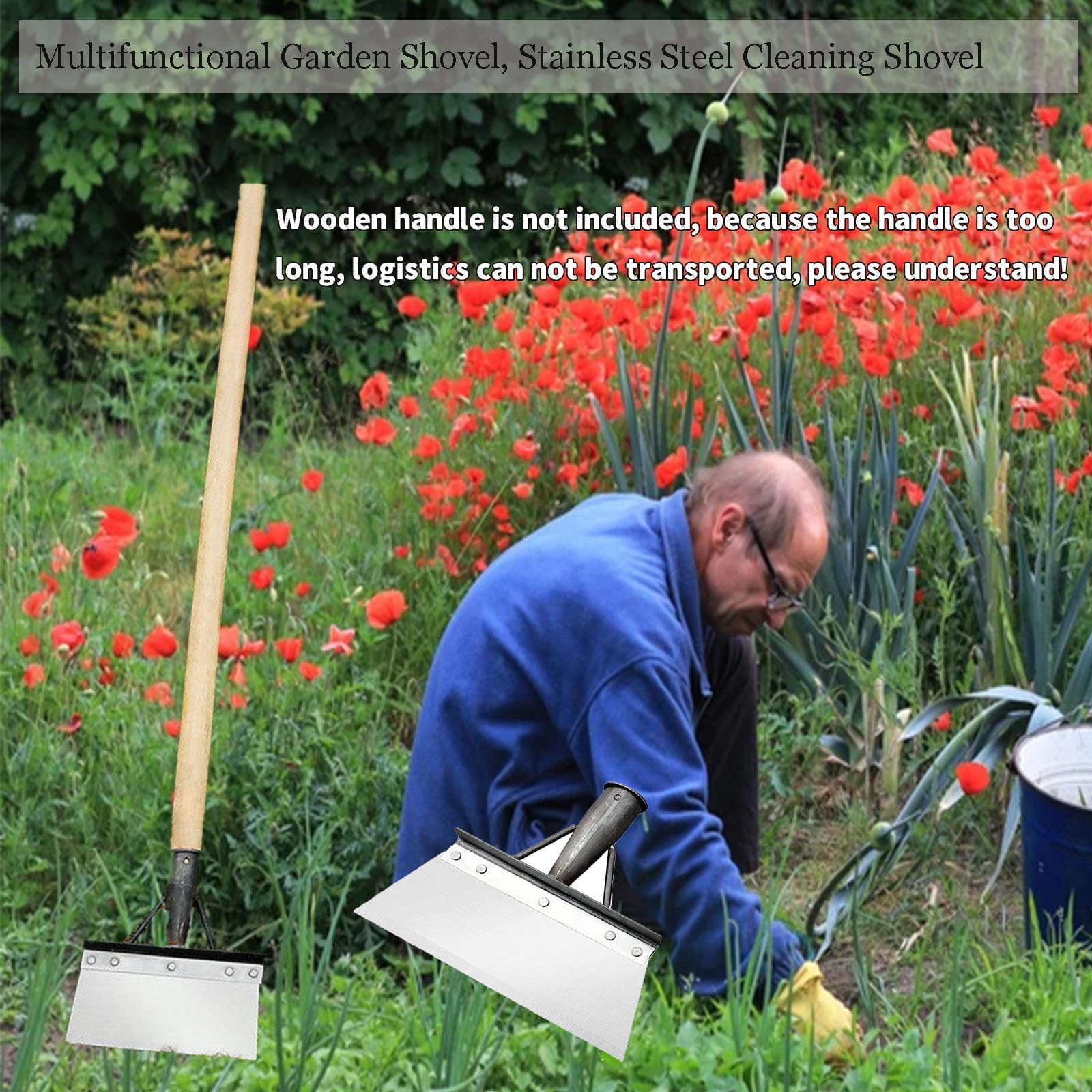 - HIGH QUALITY : the whole garden shovel head is made of stainless steel. Heavy-gauge steel stands up to any task, while the sharpened edge makes it easier to dig, chop and pry. The shovel head fits the floor seamlessly. NOTE: WOODEN HANDLE NOT INCLUDED!
