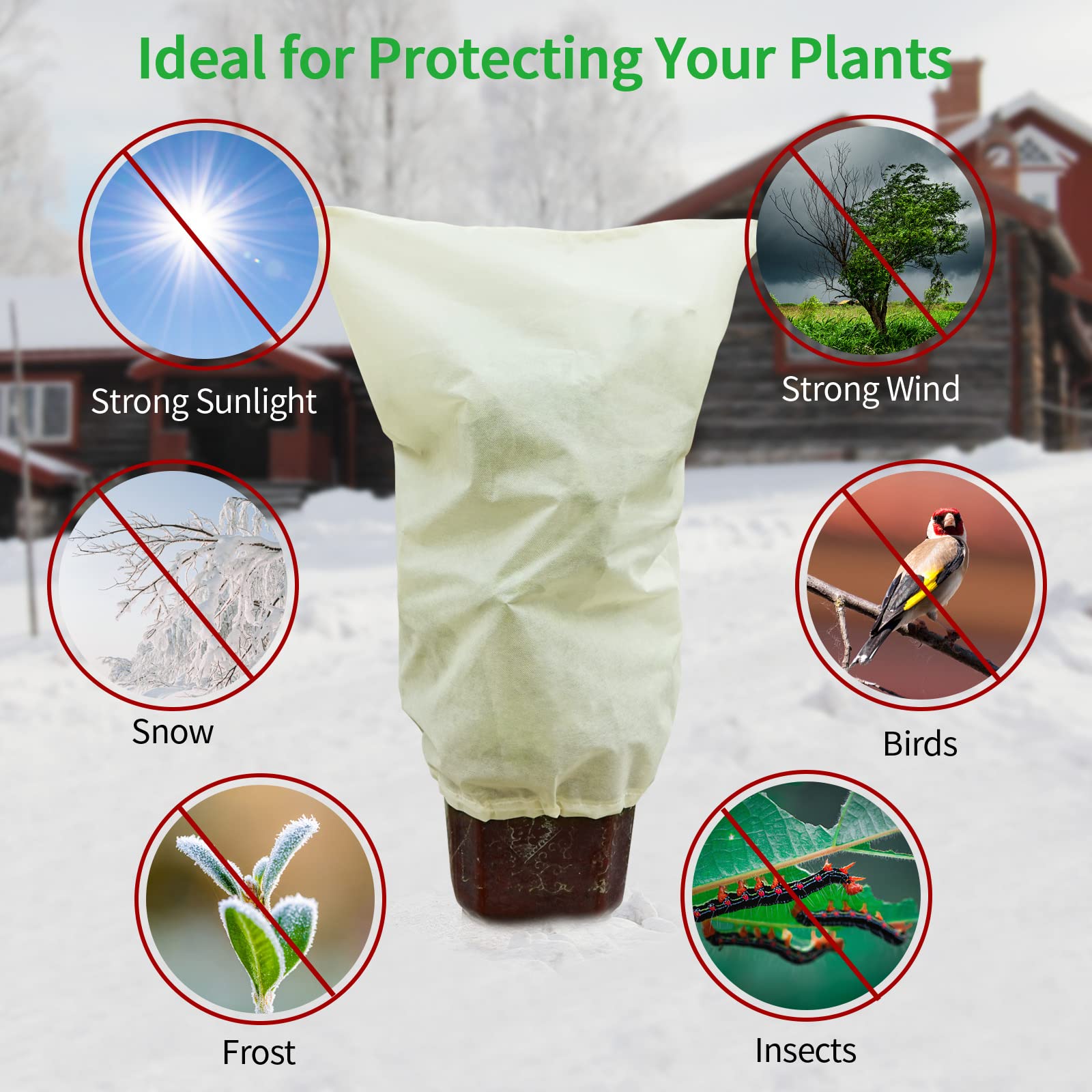 - Wide Application: Apply this fleece bag plant covering on any desired properly sized plants. Guaranteed to protect your plants from snow, hail, frost, insects and even birds during their growing season, No need to remove and replace in the morning or evening.