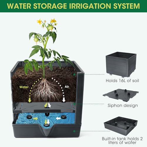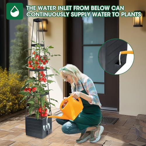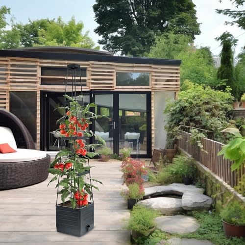 - 🍅WITH A SELF-WATERING SYSTEM:Display your favorite flowers or plants with this convenient self-watering tomato planter! Tomato planter with trellis has a reservoir at the bottom, which keeps the soil continuously moist in the hot summer, without daily watering and less maintenance. Plants grow according to their own needs and get the nutrients they need from the reservoir. The self-watering function is always the savior of thirsty tomatoes and other plants.