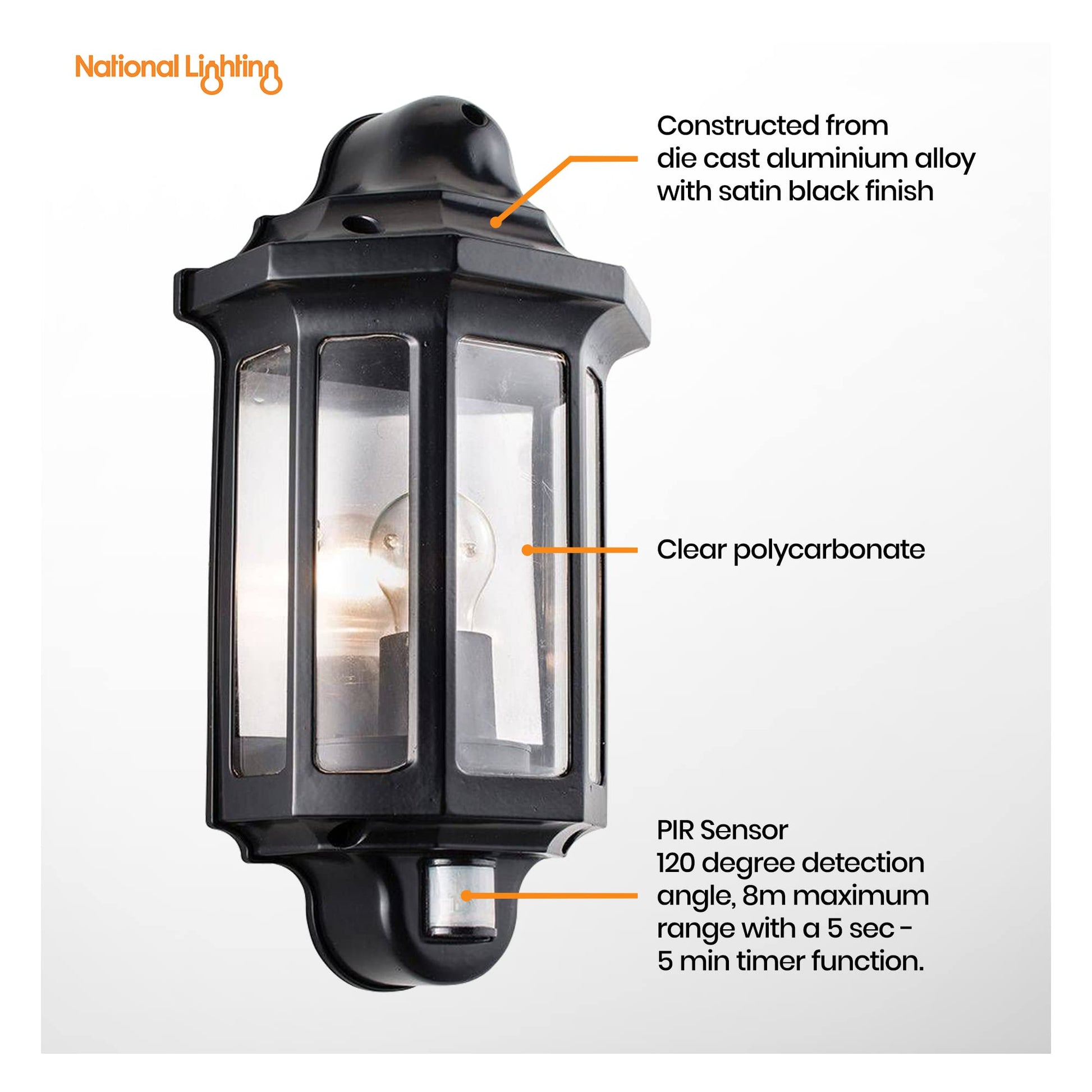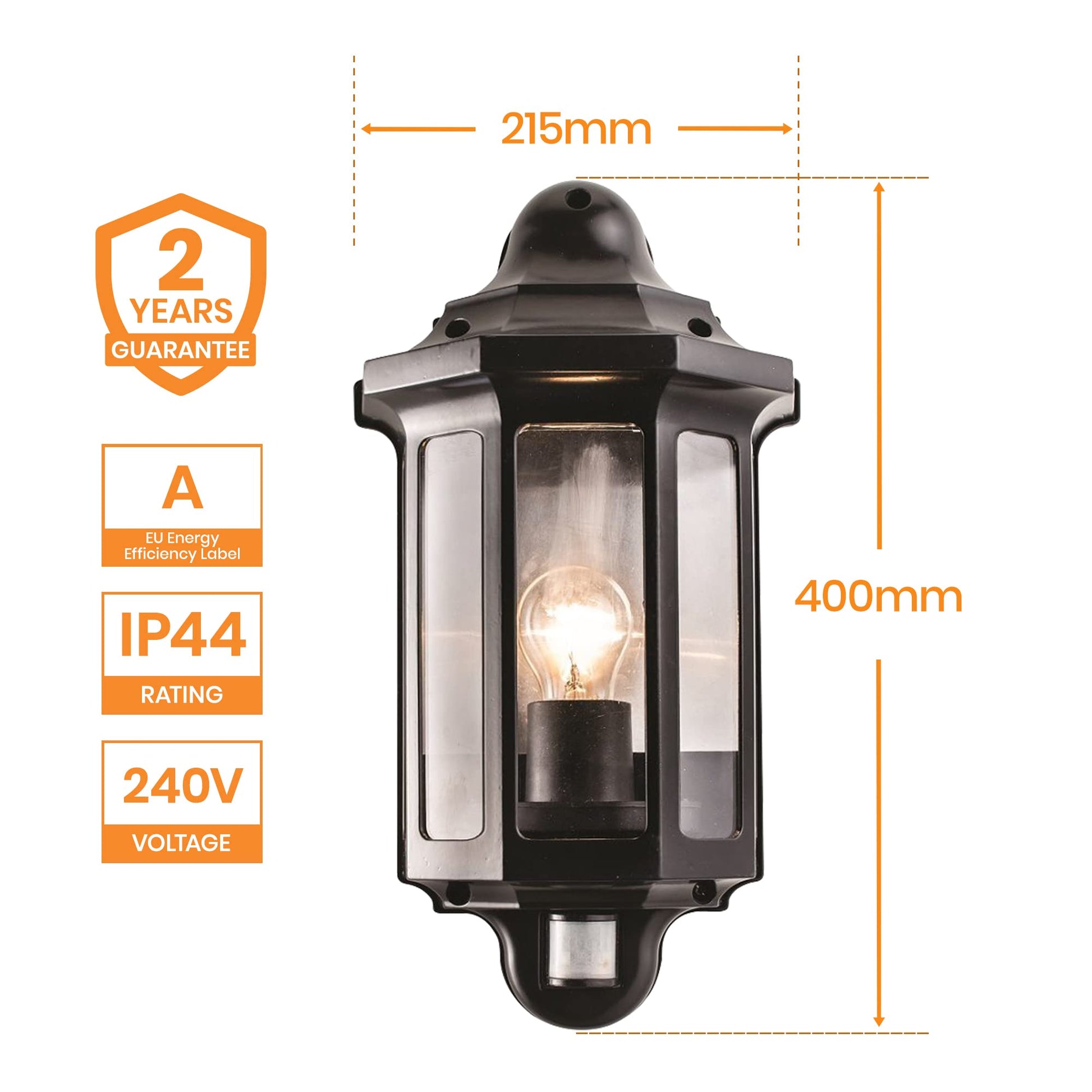 - Satisfaction Guaranteed - For your peace of mind, our good quality PIR lantern fitting comes with a 2-year guarantee.
