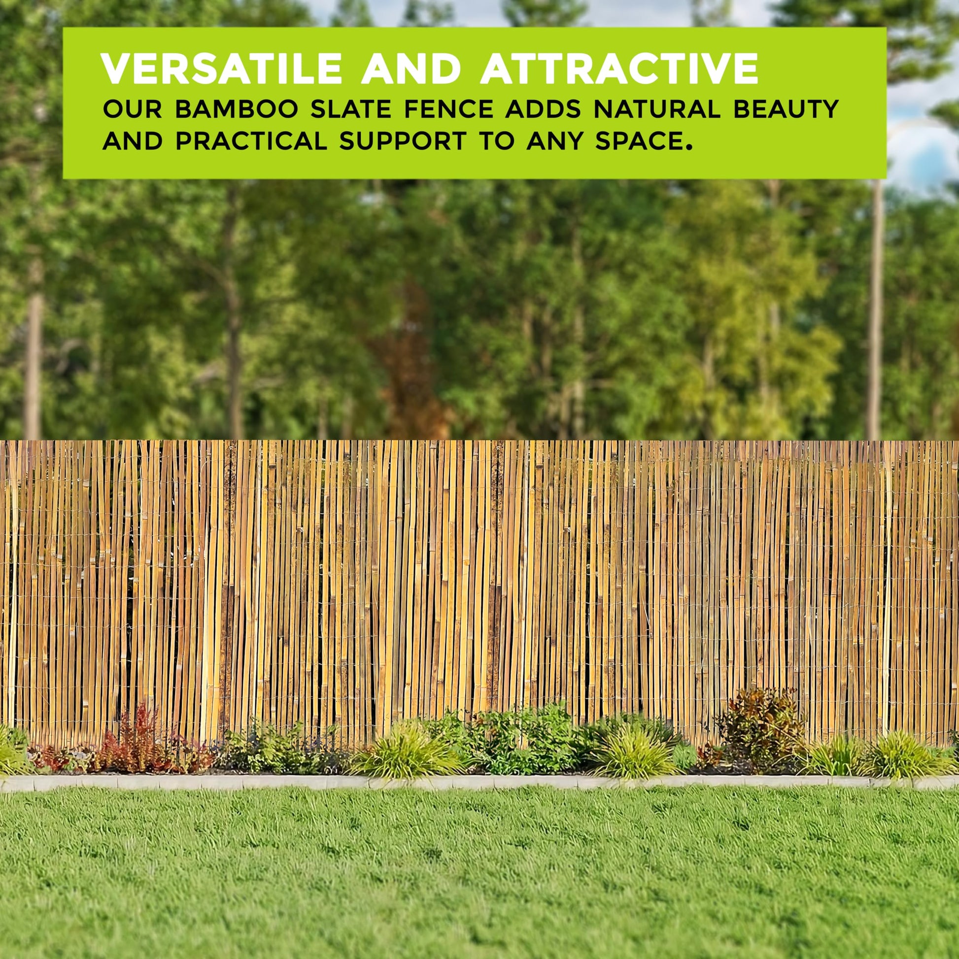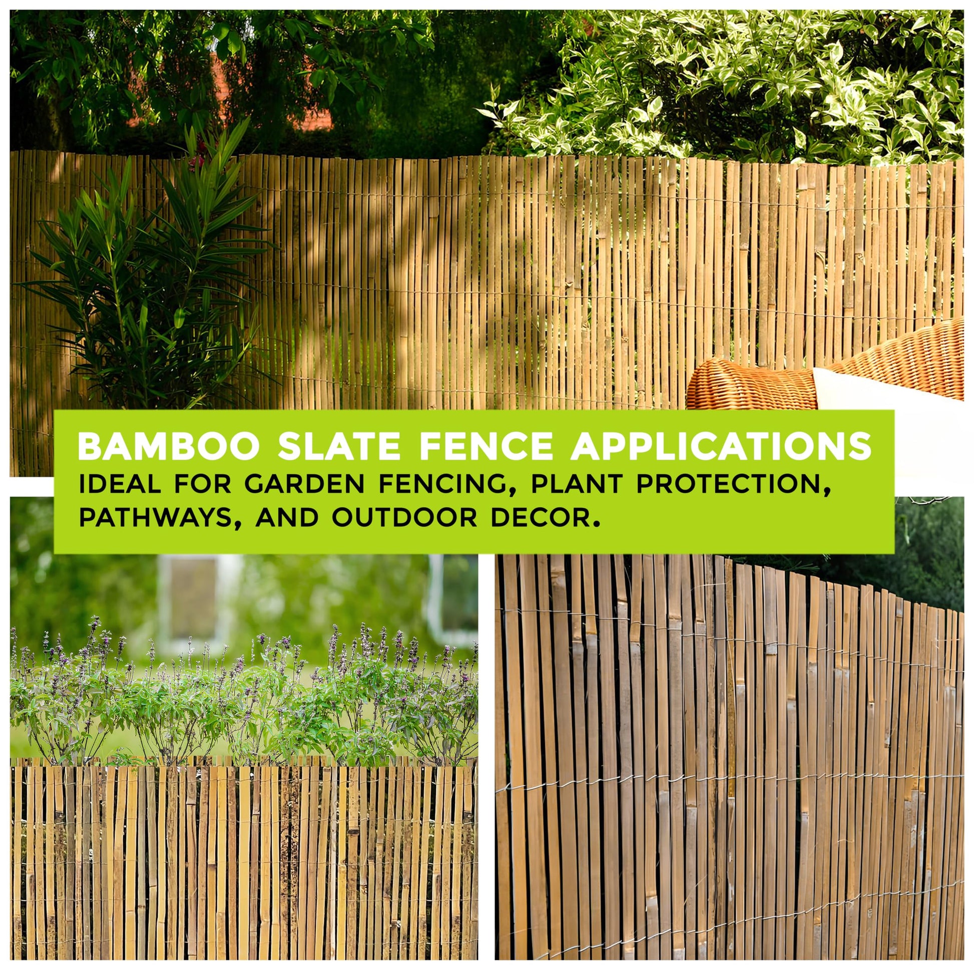 - [ 𝗢𝗿𝗴𝗮𝗻𝗶𝗰 & 𝗡𝗮𝘁𝘂𝗿𝗮𝗹 - 𝗦𝘂𝗽𝗲𝗿𝗶𝝾𝗿 𝗤𝘂𝗮𝗹𝗶𝘁𝘆 & 𝗗𝘂𝗿𝗮𝗯𝗶𝗹𝗶𝘁𝘆 ] - Our bamboo fence screening is crafted from high-grade bamboo for exceptional strength and longevity. This durable bamboo screening withstands outdoor conditions, making it suitable for garden fence screening, balcony privacy screen, and stylish garden privacy screen. Our sturdy fencing panels ensure lasting privacy and elegance.