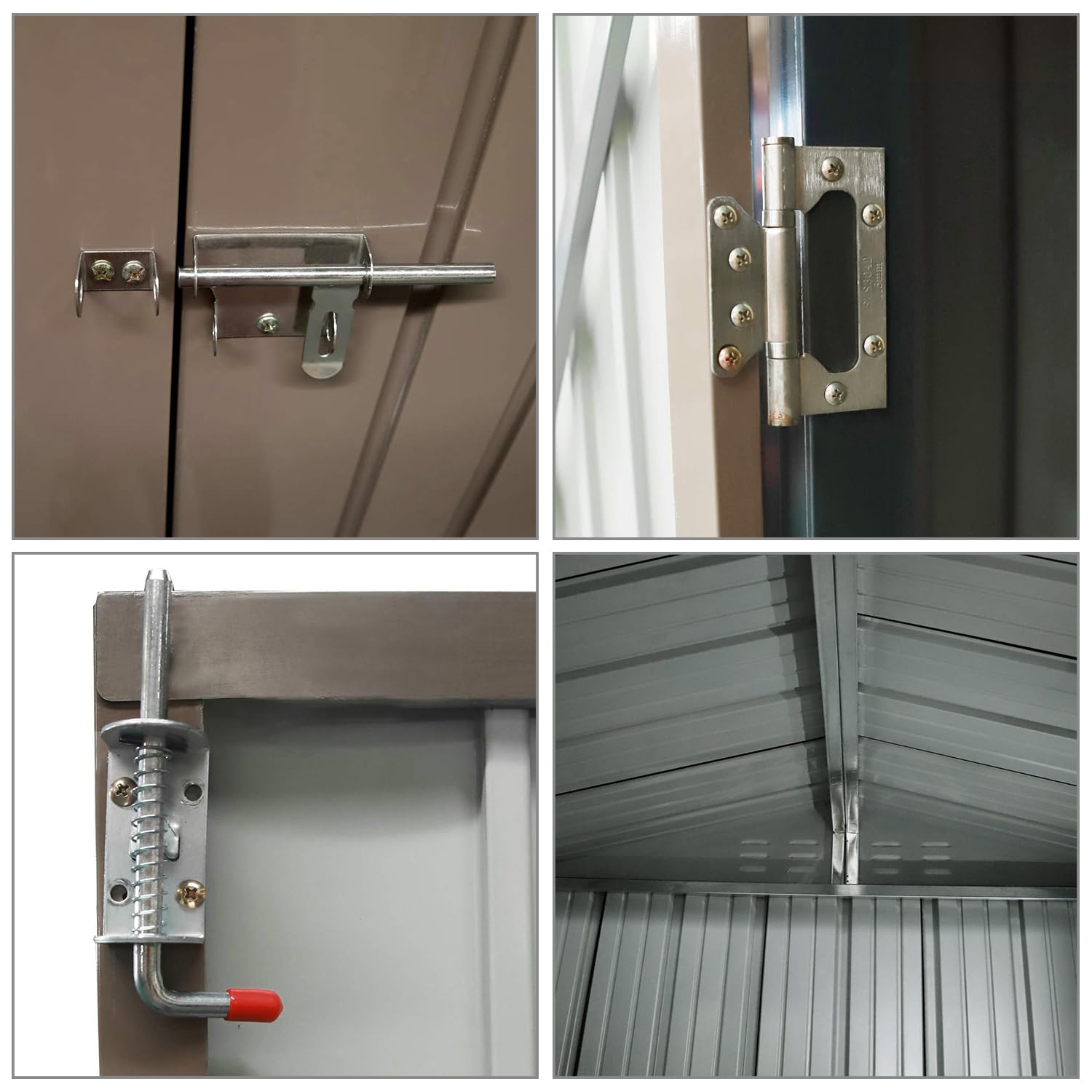 - 🎉Good Material:Galvanized steel in finish for long-lasting use. The doors with lock allow easy access to store your tools, garden supplies, lawn mower, grill equipment, fire pit and other yard items.