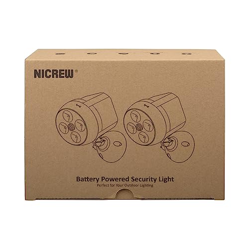 NICREW Battery Powered Outdoor LED Security Light 2-Pack, PIR Motion Sensor Spotlight, Weatherproof Outdoor Wall Light for Gardon Walkways