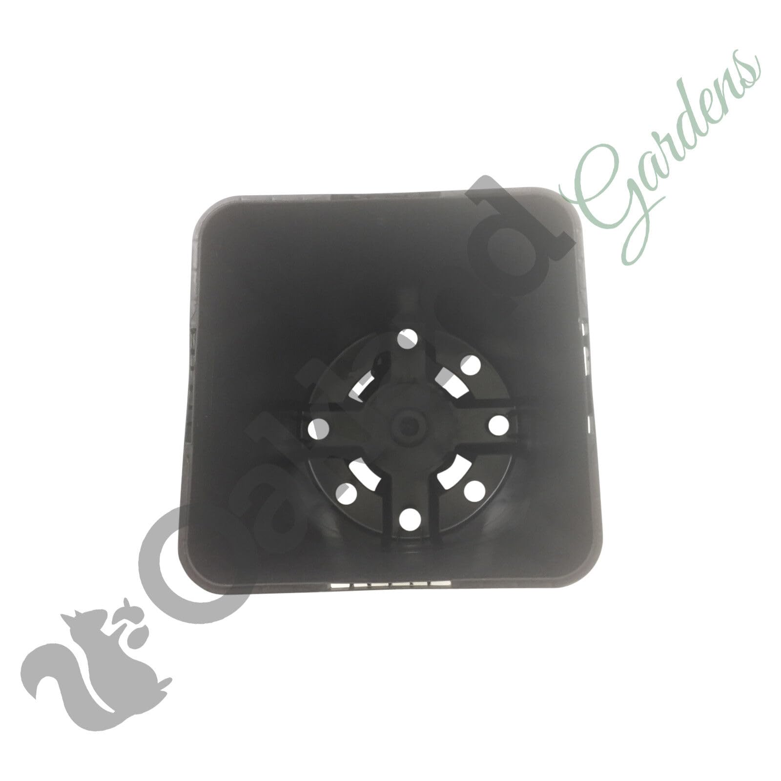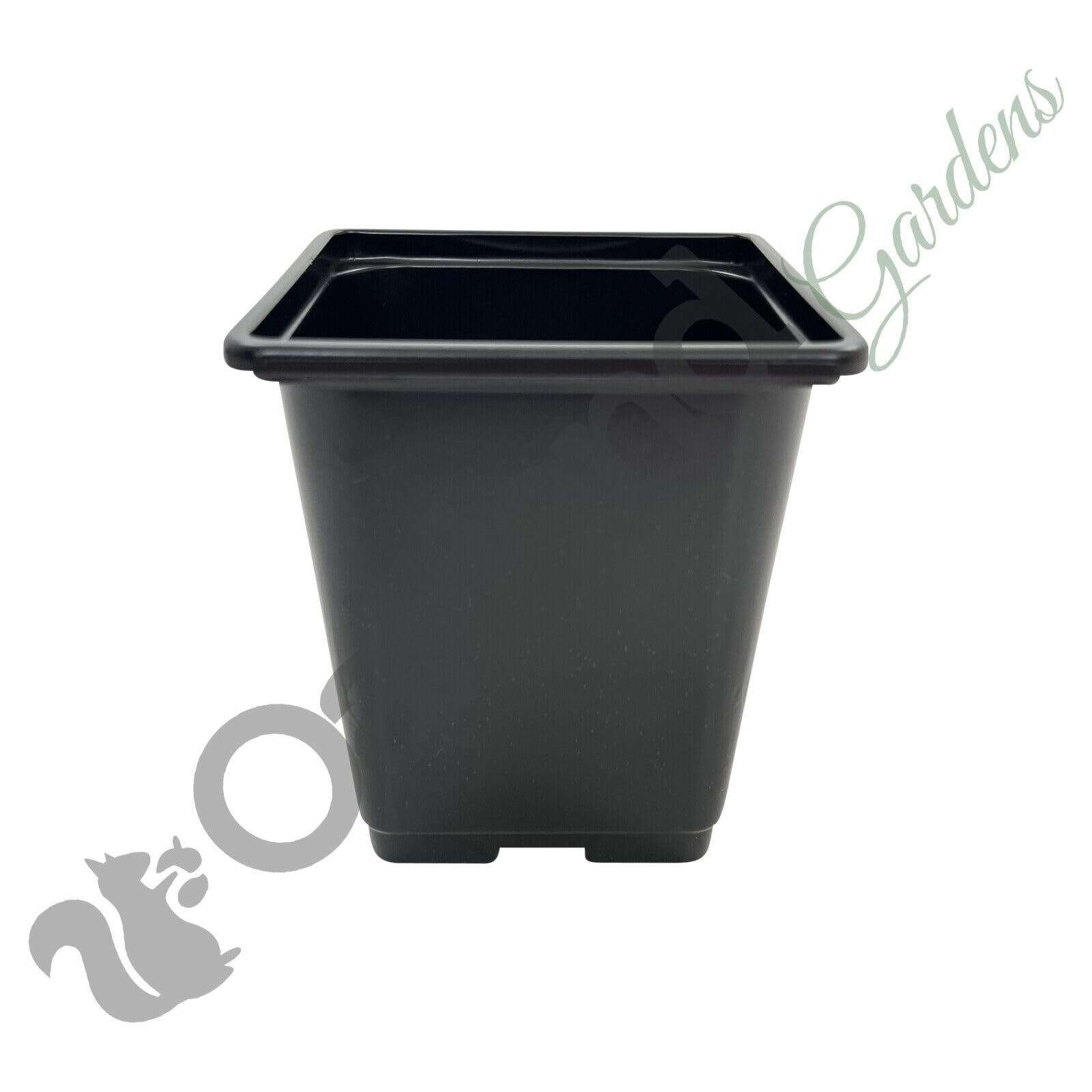 Strong Injection Moulded square plant pots, square at the top and rounded at the bottom.