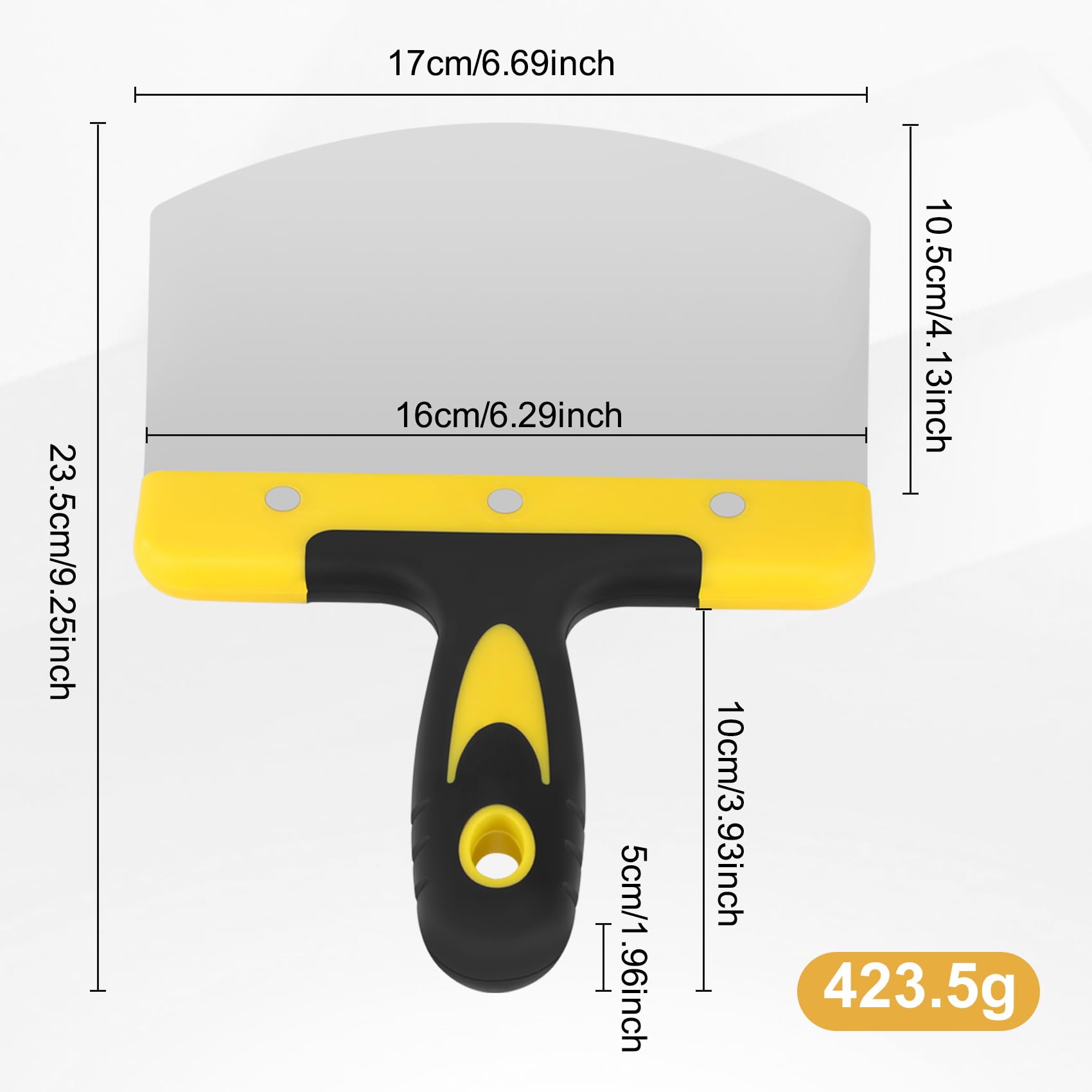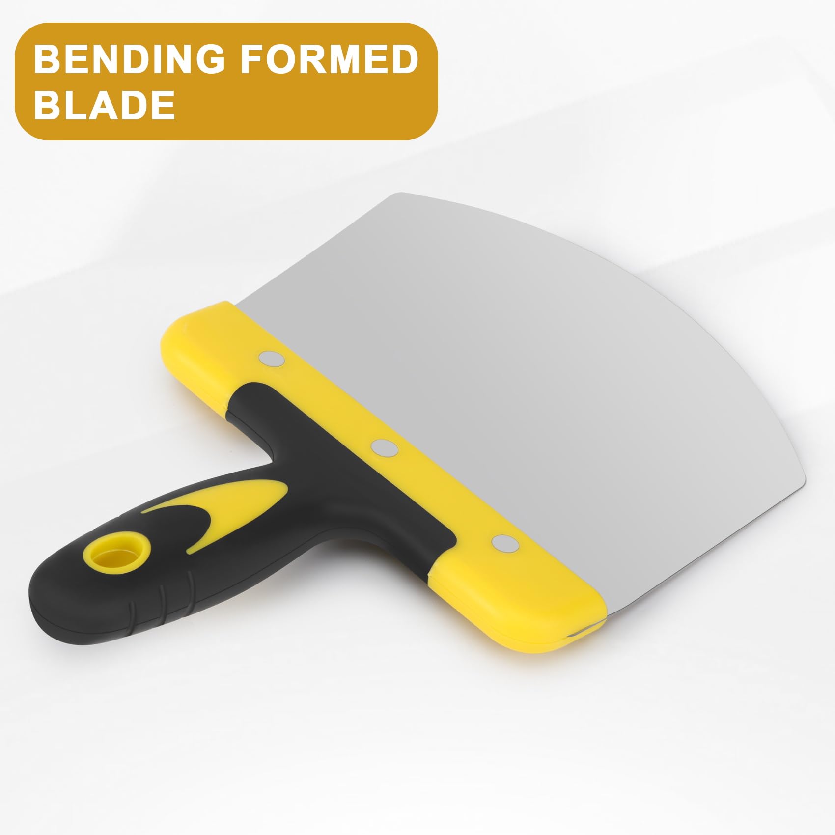 Ocnvlia Scrapers 2PCS Bucket Scoop for Drywall, Plaster Stainless Steel Bucket Scoop - 6.5 Inch Curved Contoured Blade for Paint, Mortar- Yellow