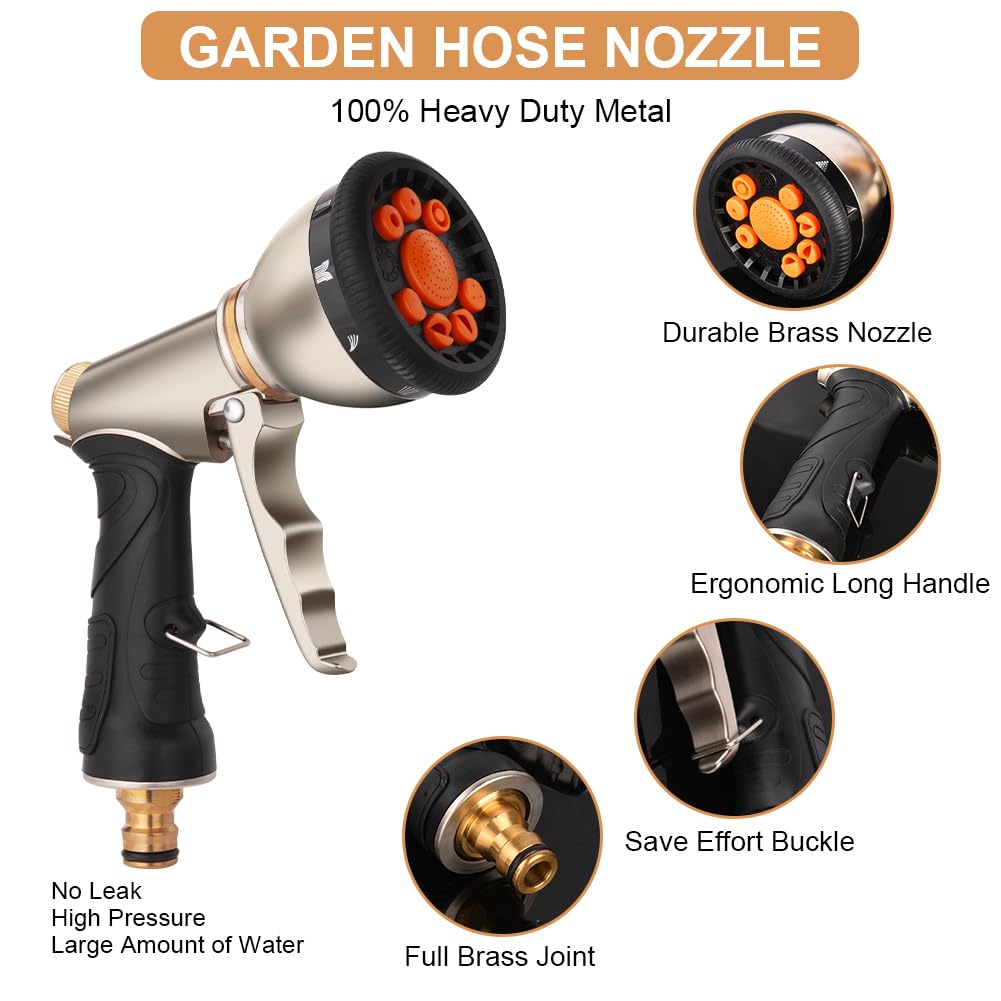 - 【Easy to Use】This hose spray gun is compatible with most hoses, and the quick connector connects to the water pipe. With just a gentle push, the hose snaps into place. No adapters required, no other tools required. If you have a garden hose attachment, it works right out of the box and you don't have to worry about spray pressure leaks thanks to our strong sealing technology and versatile connections.