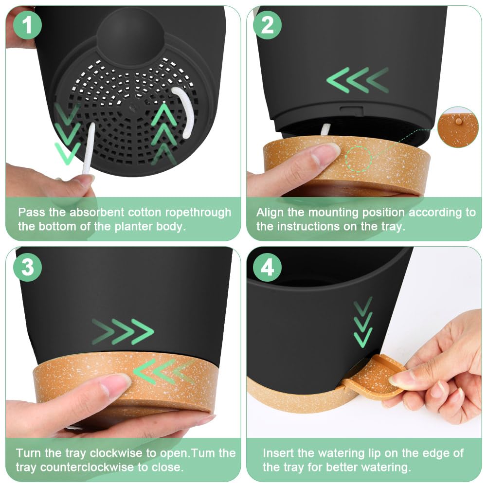 - 【What you will get】Package contents: 6 x 16.5cm plastic self-watering flower pots; matching tray x6; cotton rope x 6; watering lips x6; plastic plant labels *20; Note: 1. The product does not include plants .