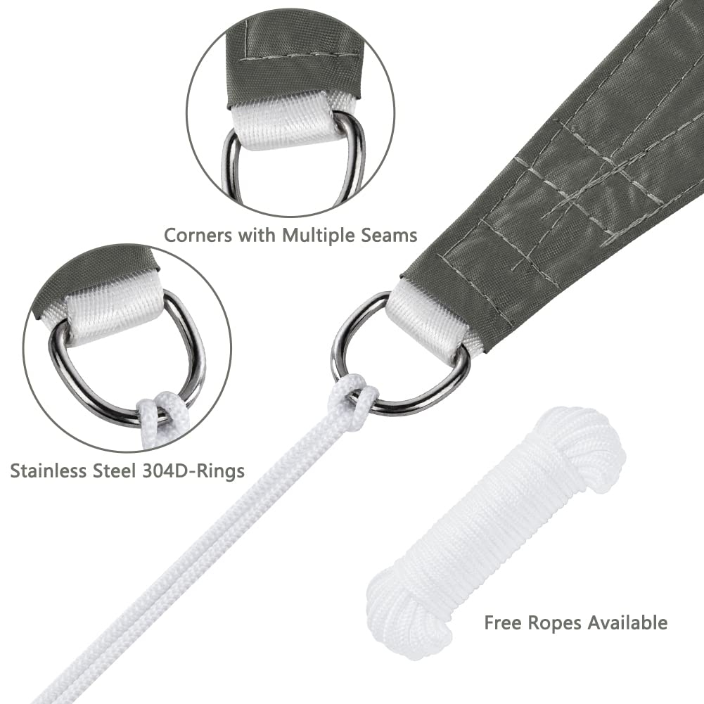 - 【Easy to Install】Durable stainless steel D-rings are fixed at each corner, and 3 durable ropes 2.5 meters long, you can easily and quickly install the shade sail anywhere you want (recommended installation angle is 20- 40 degrees) degrees to achieve maximum tension and allow rainwater to run off)