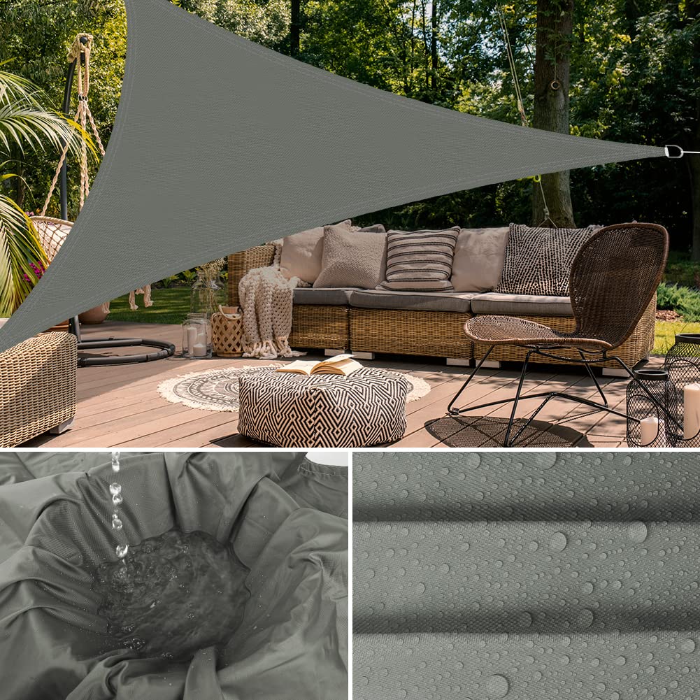 - 【High Quality Fabric】Our triangular shade sail is made of oxford fabric with 160 gsm PU coating, which is healthy and safe to use. It's highly waterproof, tear-resistant, and weather-resistant, making it ideal for long-term use. But we don't recommend using the shade sail in heavy rain, continuous heavy rain may cause slight water seepage.