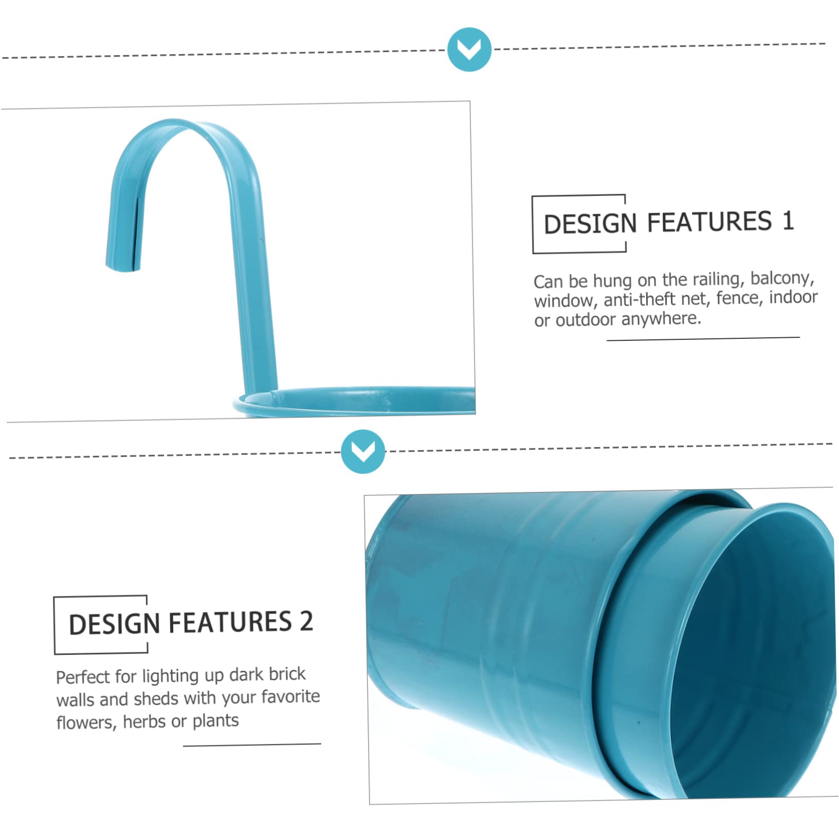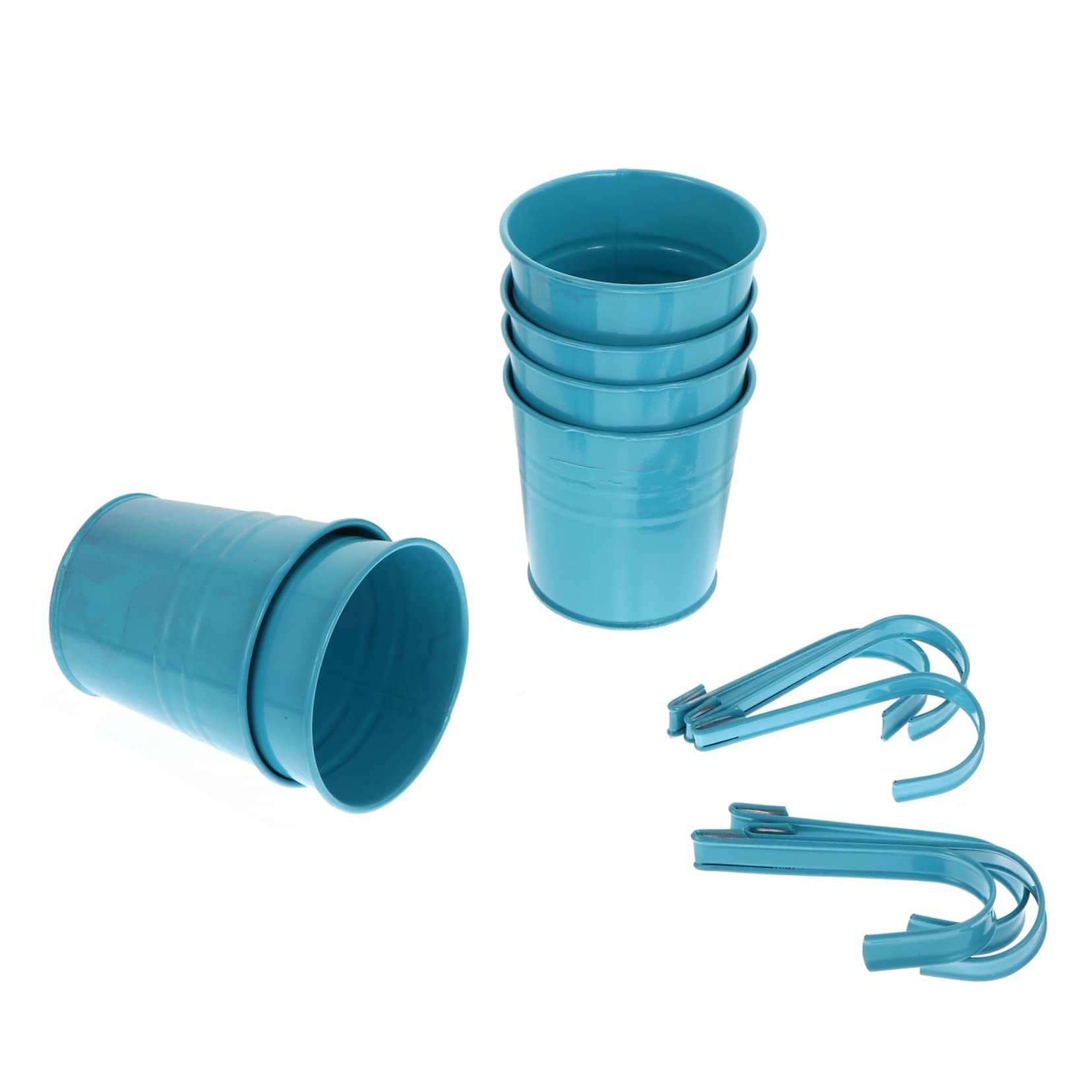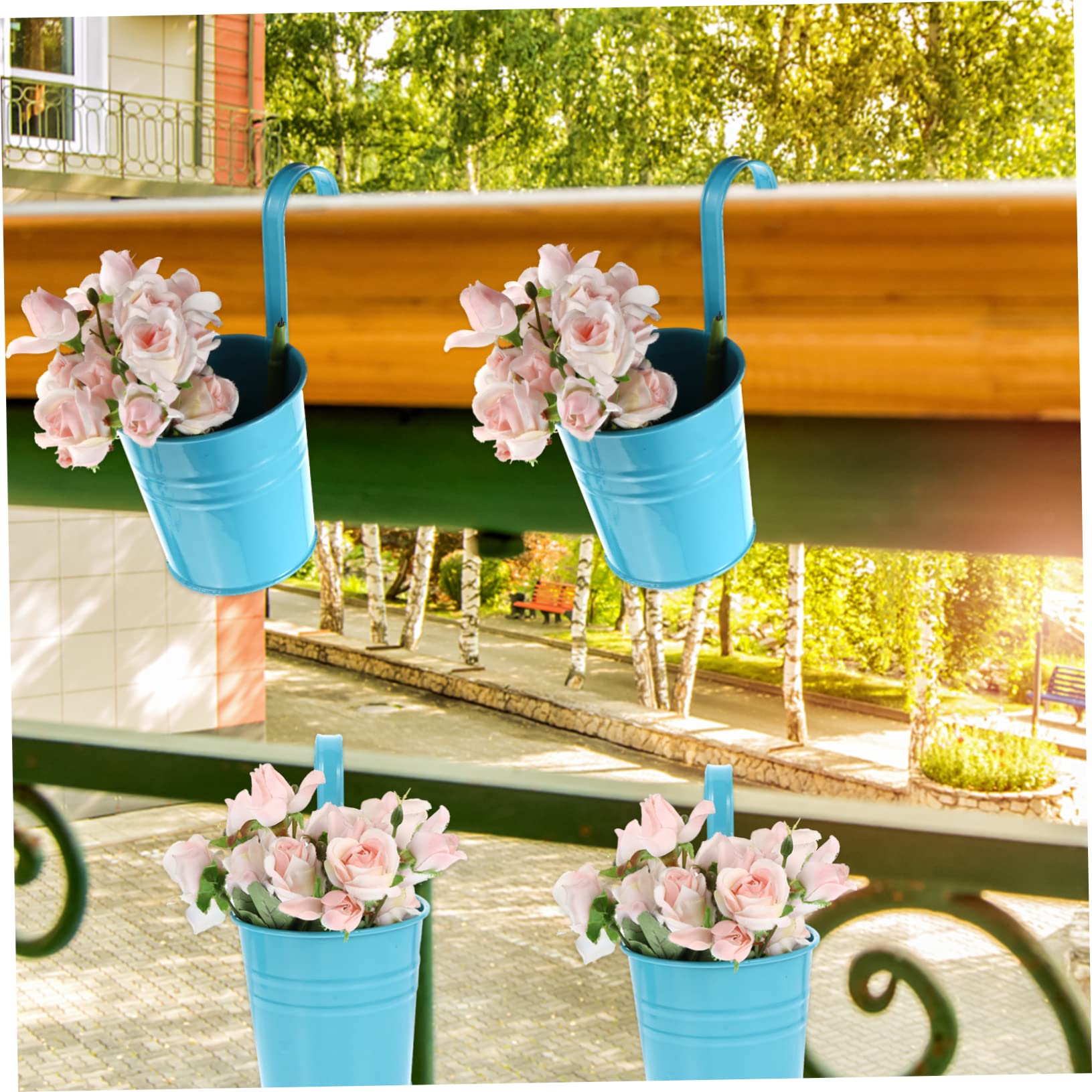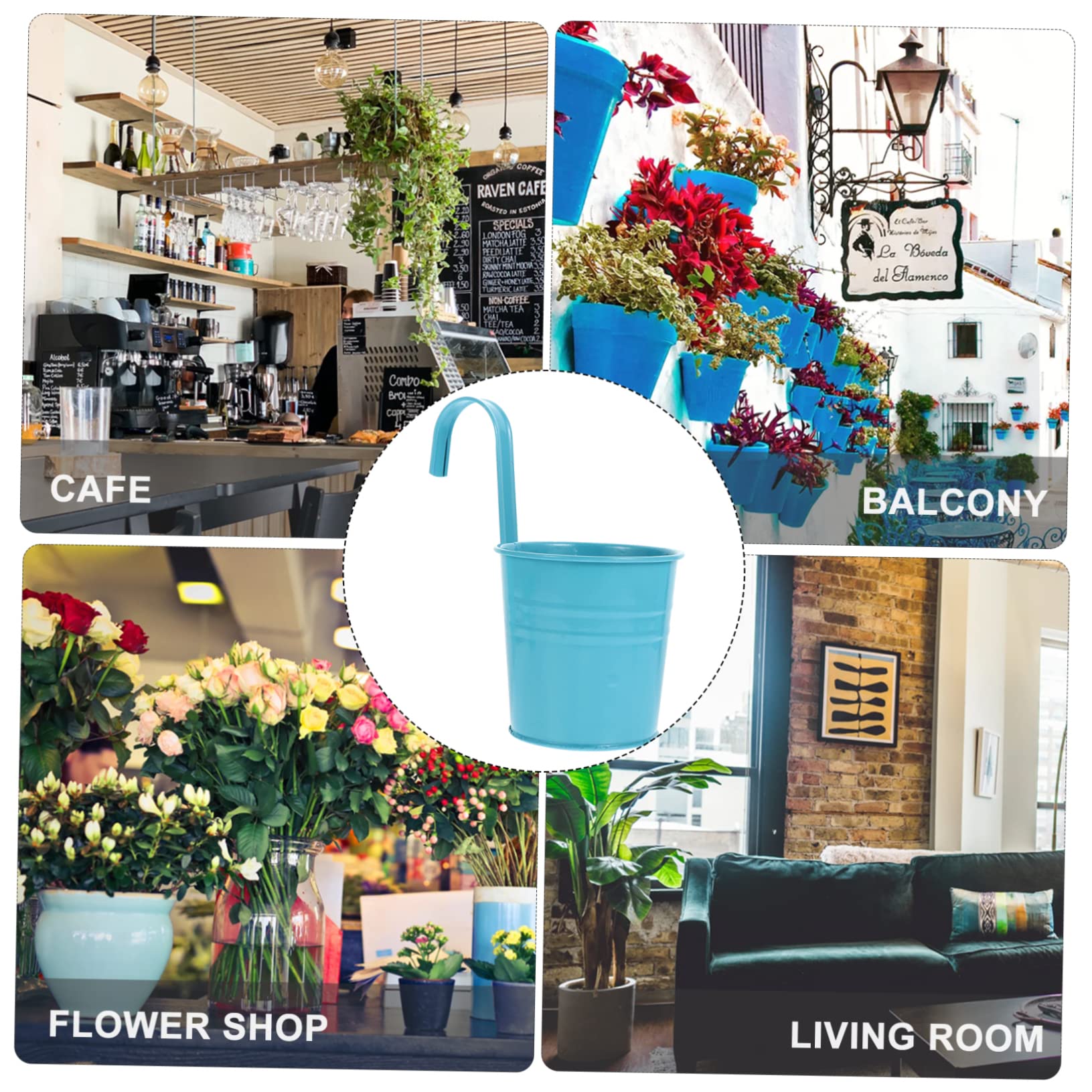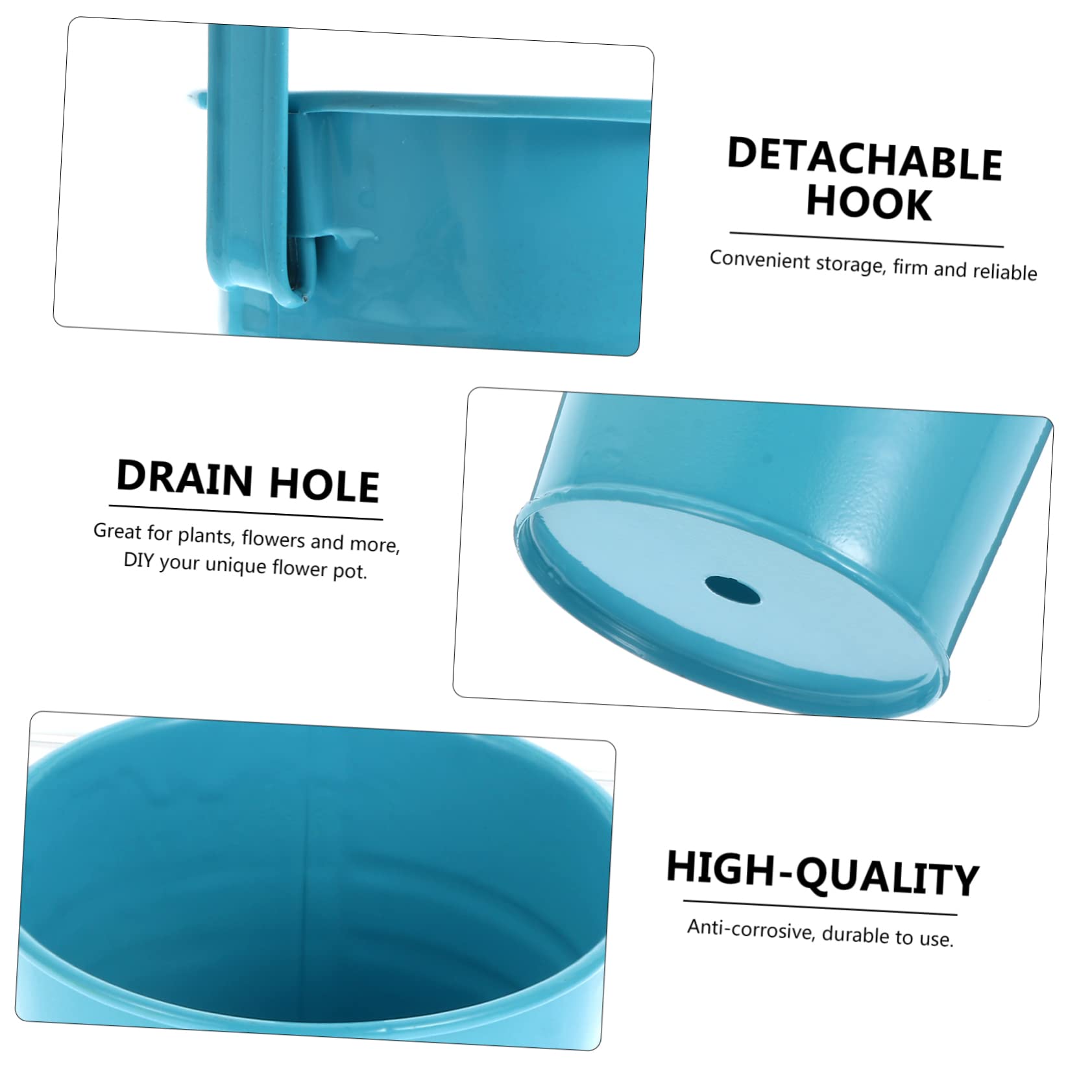 OFFSCH 6pcs Hanging Tin Flower Bucket French Country Decor Outdoor Metal Flowers Outdoor Plant Pots Iron Flower Pot Small Hanging Planters Blue Hanging Iron Bucket Flower Holder Metal