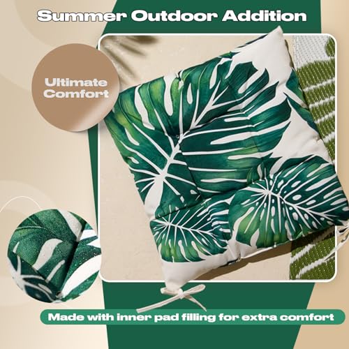 OHS Outdoor Seat Pads Tropical Leaf, Water Resistant Garden Seat Pads for Outdoor Furniture Bistro Chairs Comfy Soft Outdoor Patio Chair Cushions, Pack of 2 Green/White