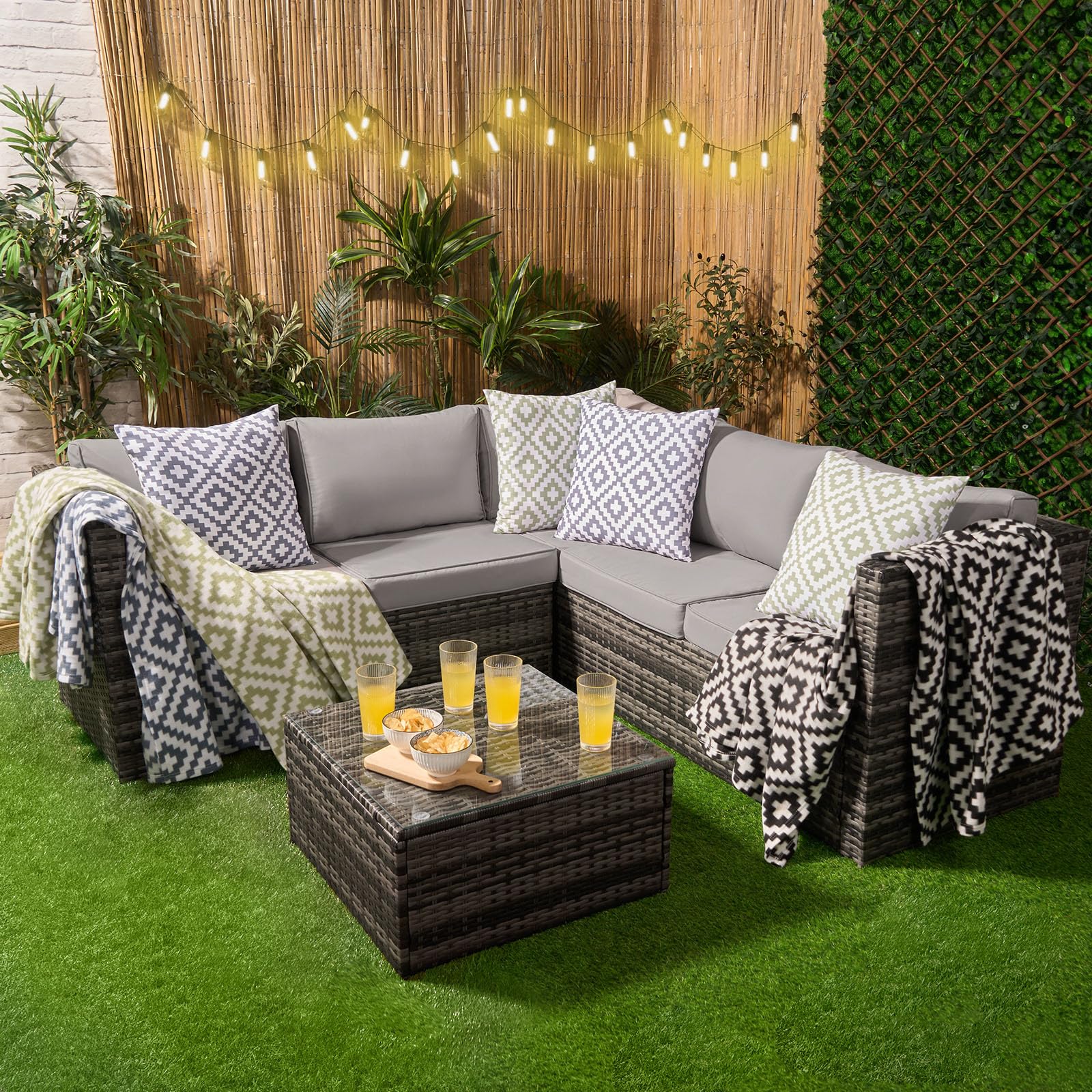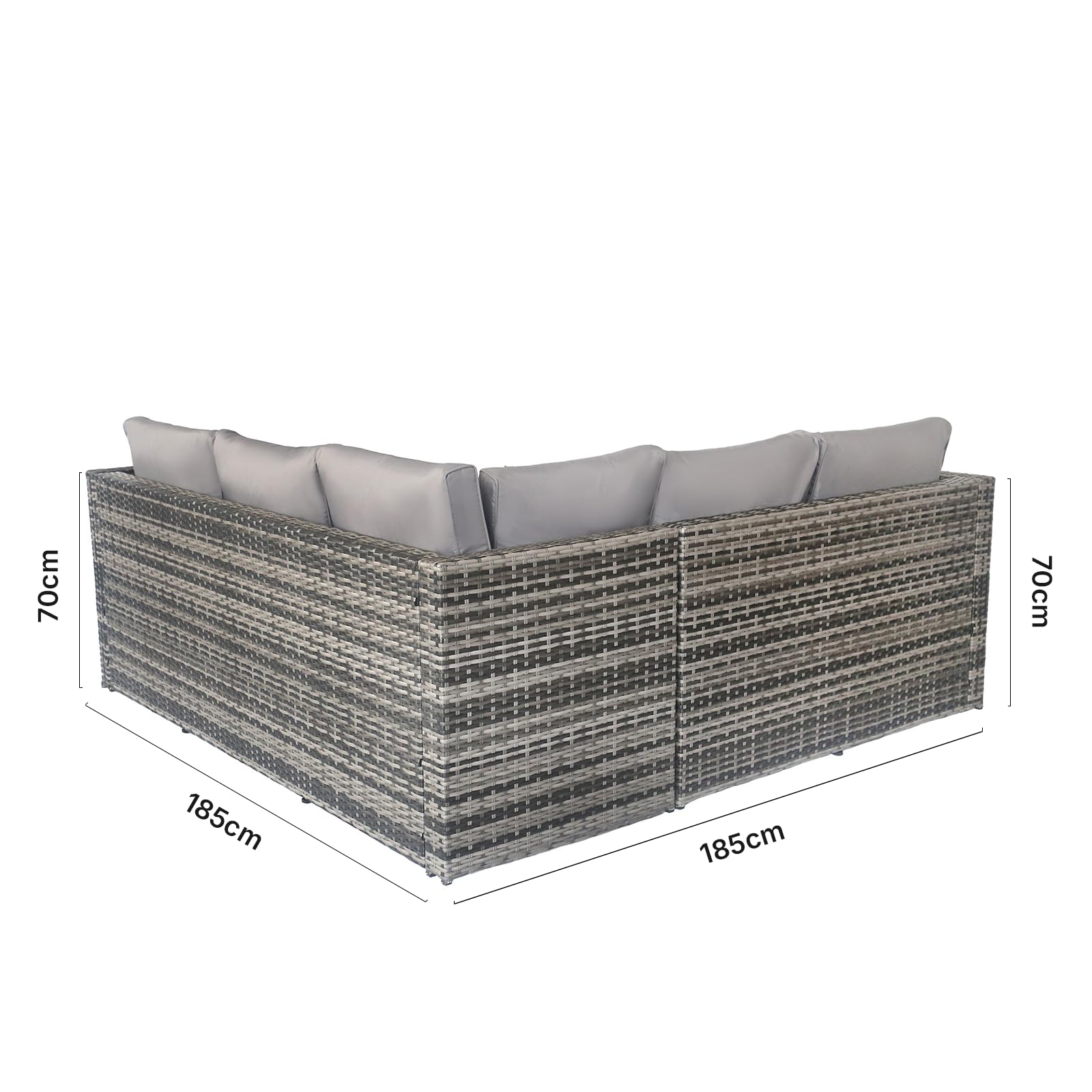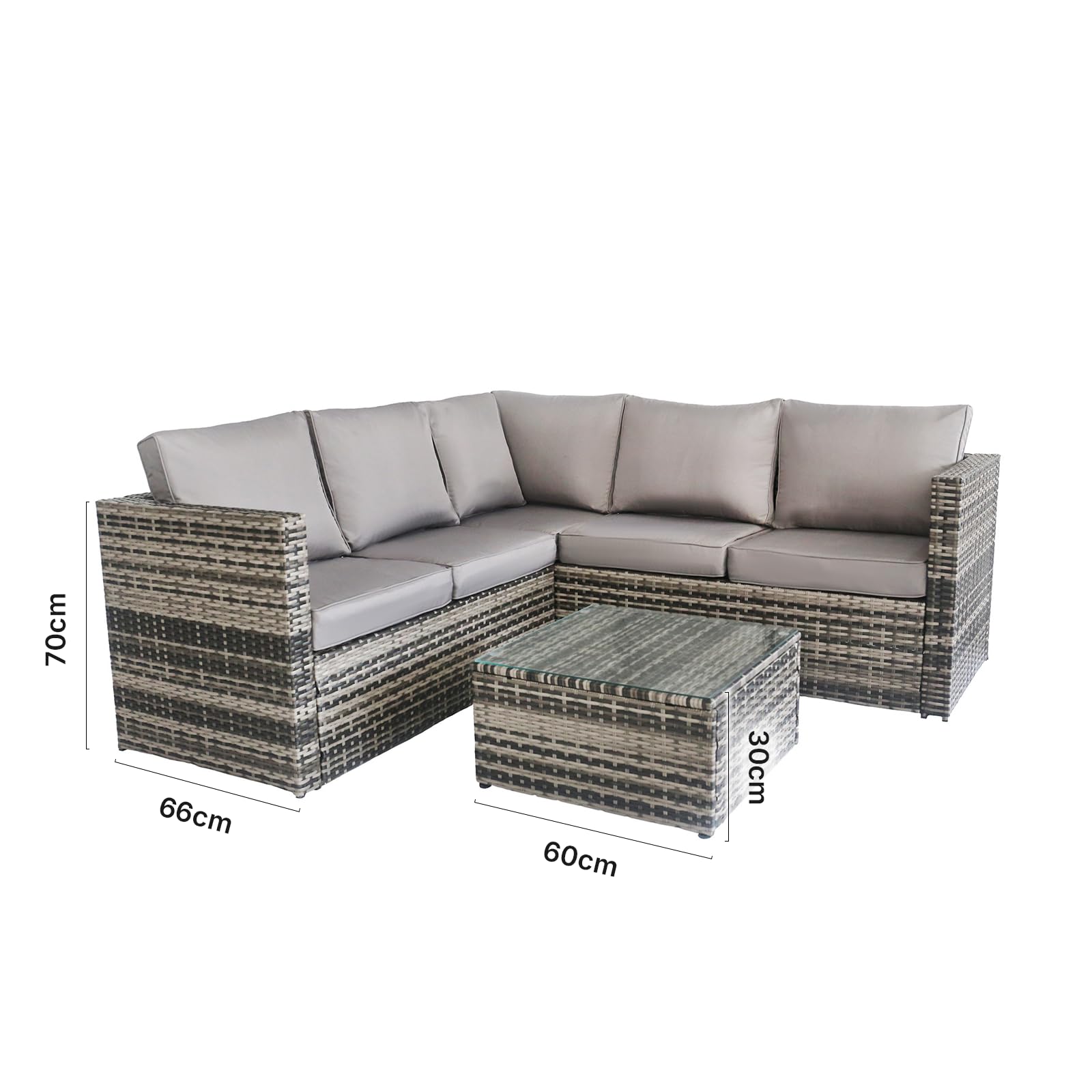OHS Rattan Garden Furniture, 5 Seater Garden Corner Sofa with Table Set Outdoor Seating Patio Conservatory Wicker Table Soft Cushions - Grey