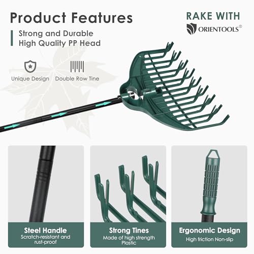 ORIENTOOLS Garden Rake Set, with Lightweight Dual-Tine Rake 160 cm, Leaf Scoop, Gloves, and Garden Bag, for Lawn Care and Leaf Cleanup
