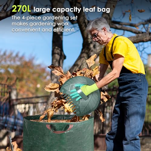 - GARDEN LEAF RAKE SET: This garden rake set includes everything you need for effective lawn care and leaf cleanup. The set features a dual-tine rake, a garden leaf scoop, durable gardening gloves, and a spacious garden bag. Perfect for keeping your yard neat and tidy with minimal effort.