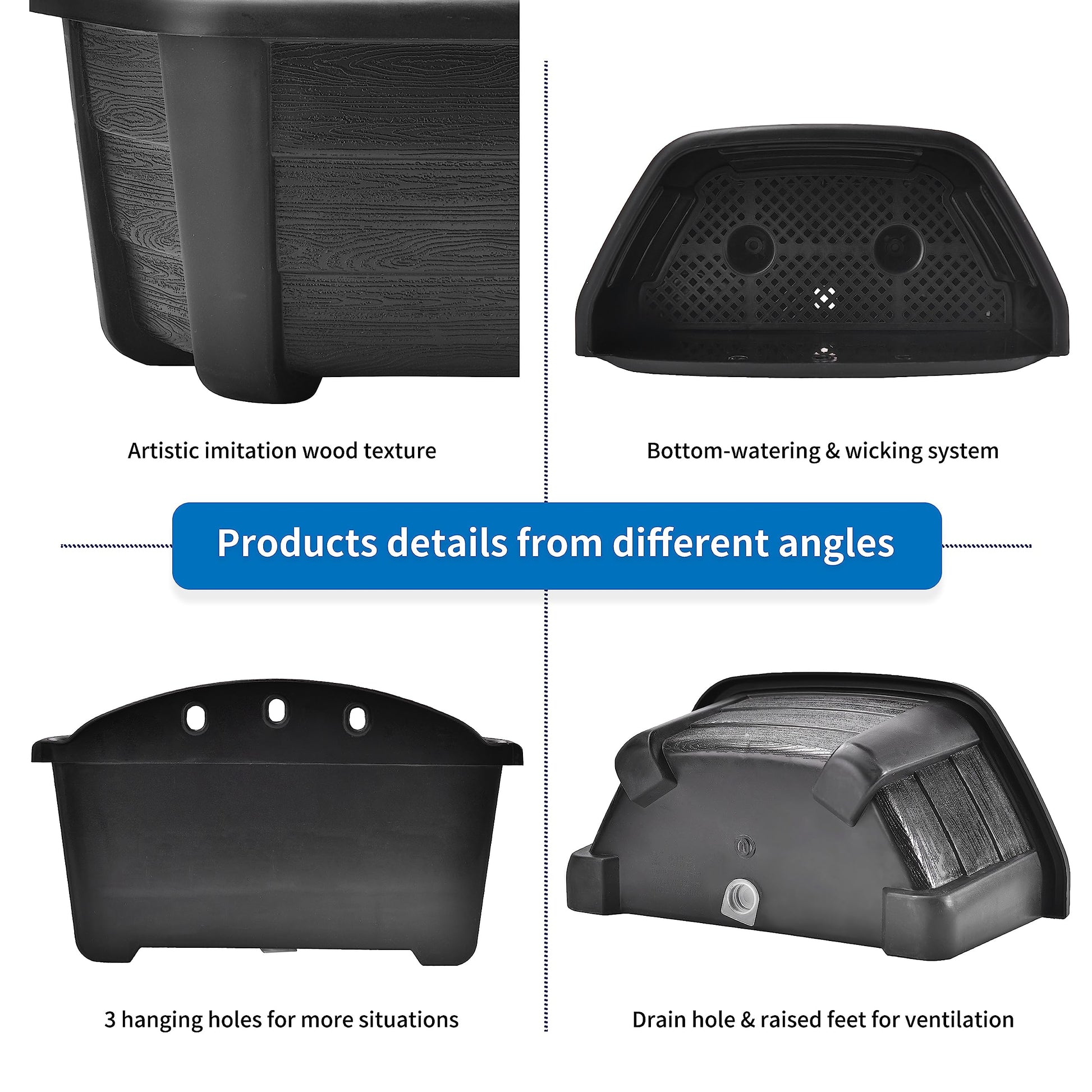 - Self Watering Wicking System: This wall flower pot has a breathable soil-separator-drainage-tray (black insert) to hold excess water in the bottom chamber and keep roots above water. And the water will travel up to the plant through the self-watering wick cord. So, you don’t end up with root rot or overwatering problems. This wall hanging flower pots could help you care your plants when you go outside a couple days or on business.