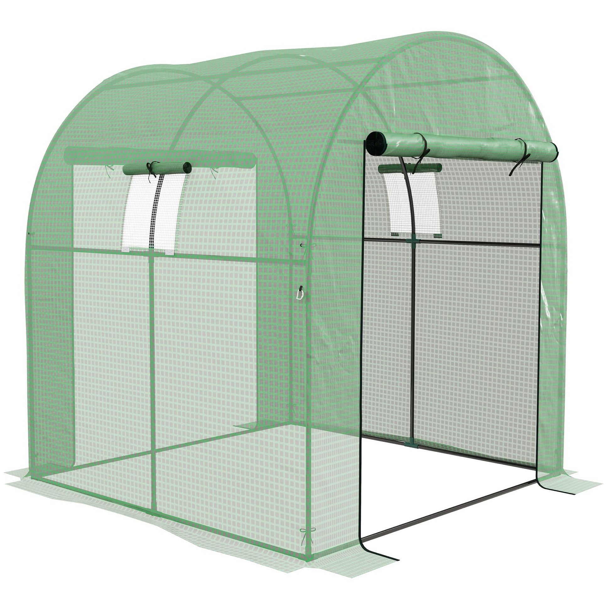 Outsunny 1.8 x 1.8 x 2m Polytunnel Greenhouse with Doors and Mesh Windows, Walk-in Grow House Tent with UV-resistant PE Cover and Steel Frame, Green