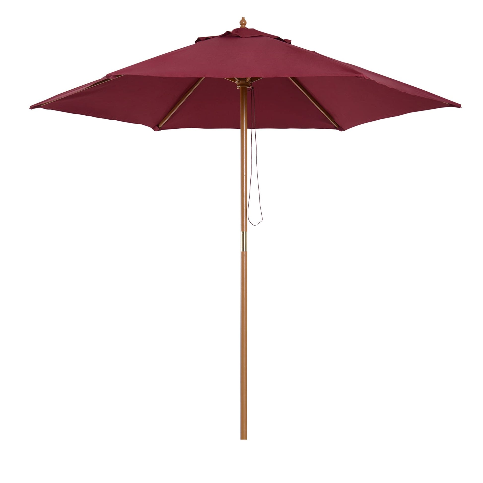 Outsunny 2.5m Wood Garden Parasol Sun Shade Patio Outdoor Wooden Umbrella Canopy Wine Red