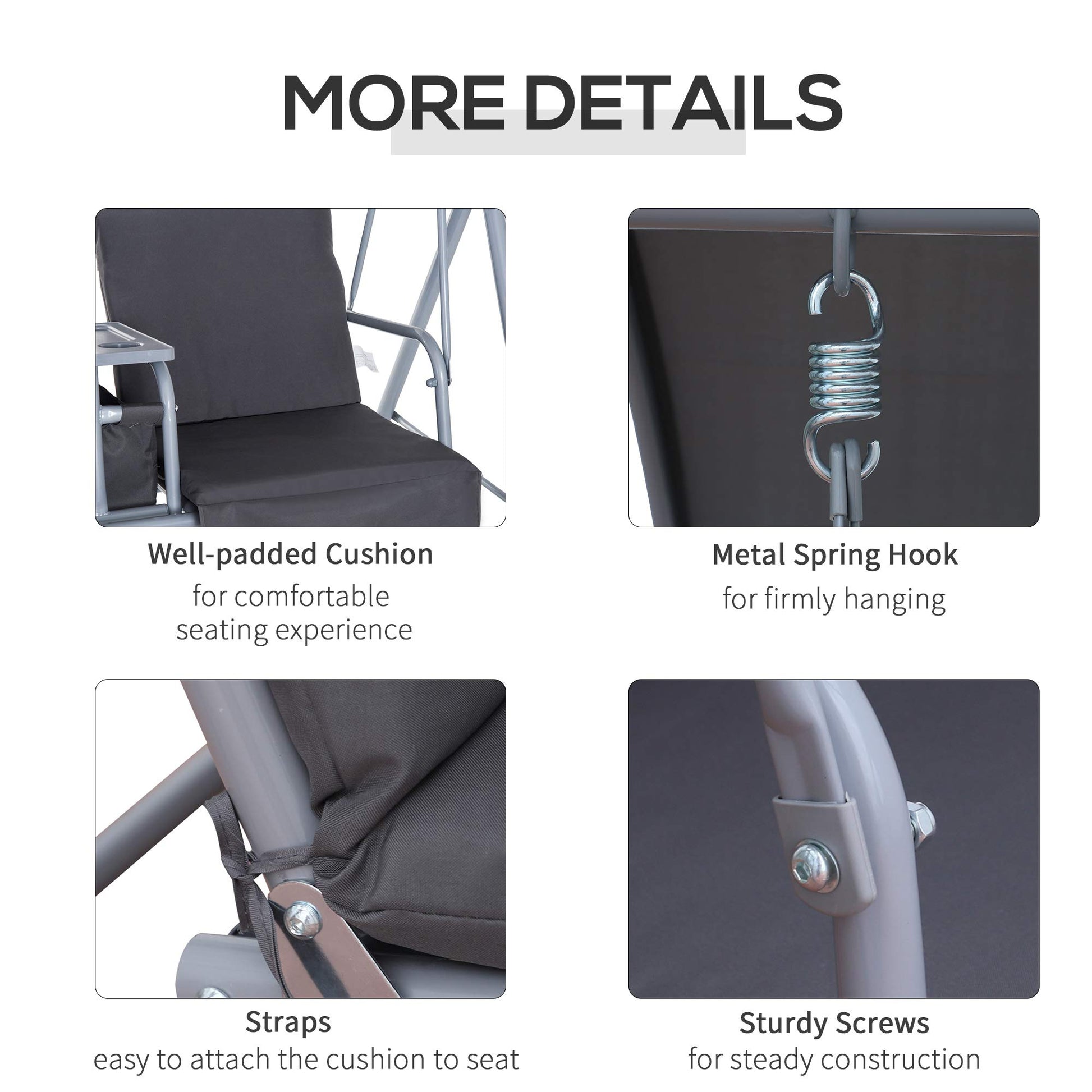 - METAL FRAME: In an A-shape to promote even balance at all times, metal garden swing bench's heavy-duty consistency ensures it is tough and reliable for outdoor use.