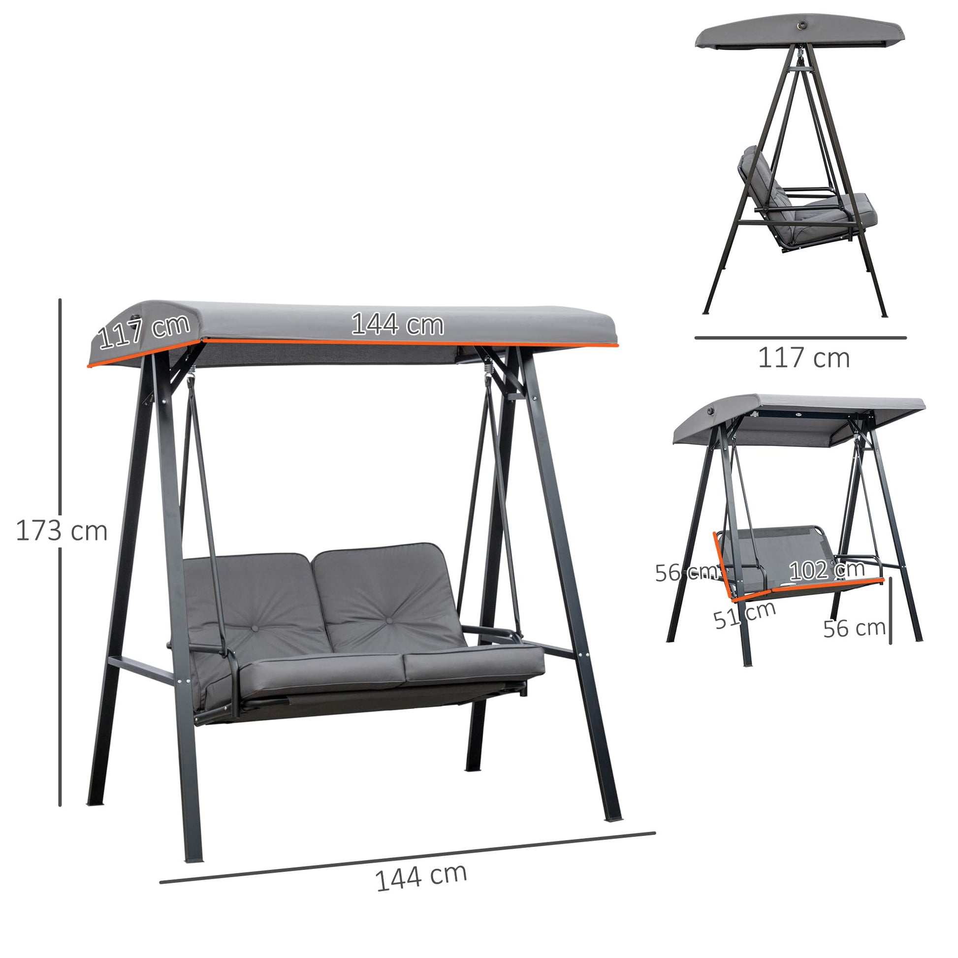- Two-seater swing chair: Sit with company or enjoy extra room to yourself.