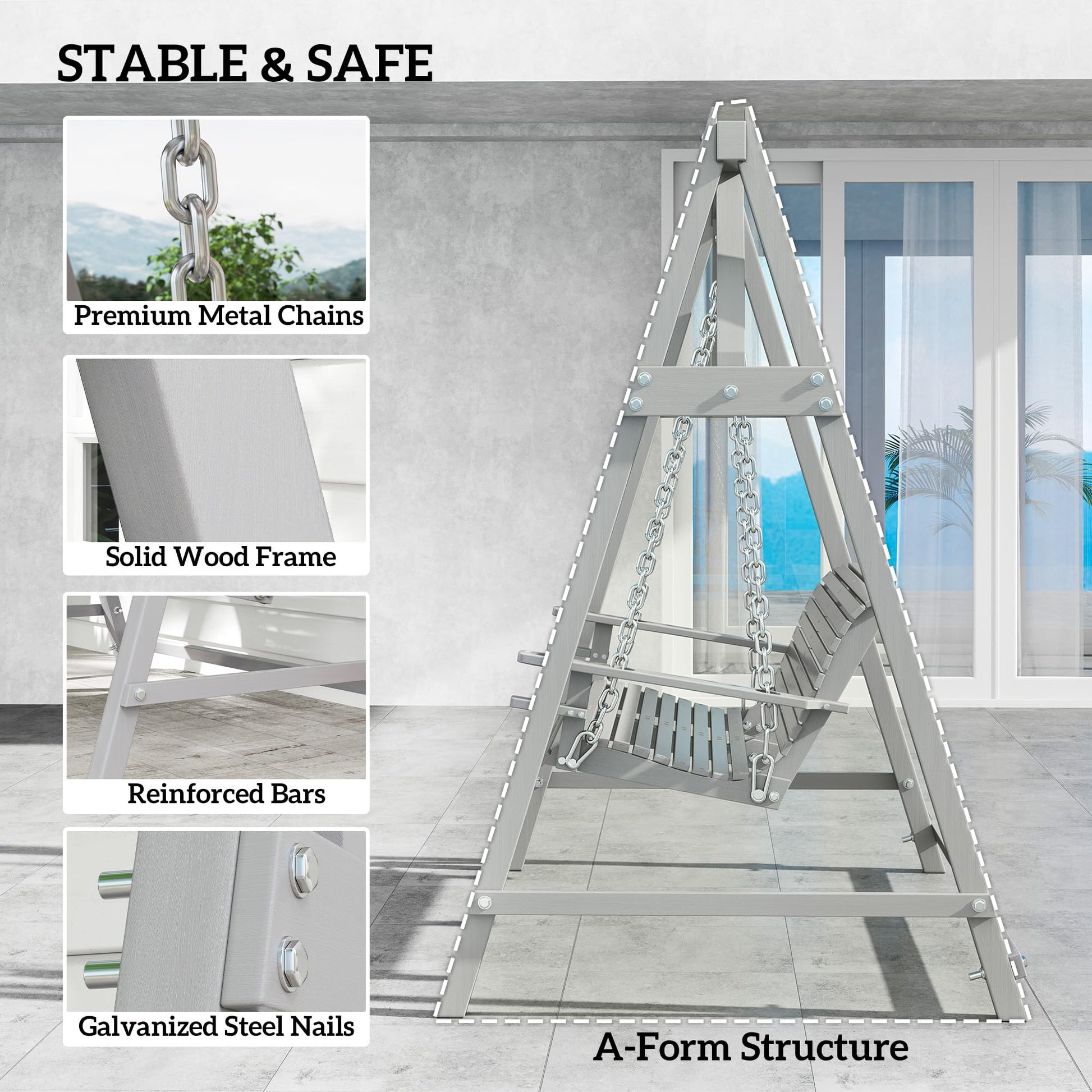 - Solid construction: Made from quality larch wood, our wooden swing bench is very robust and long-lasting. 6mm diameter thick galvanised metal chain.