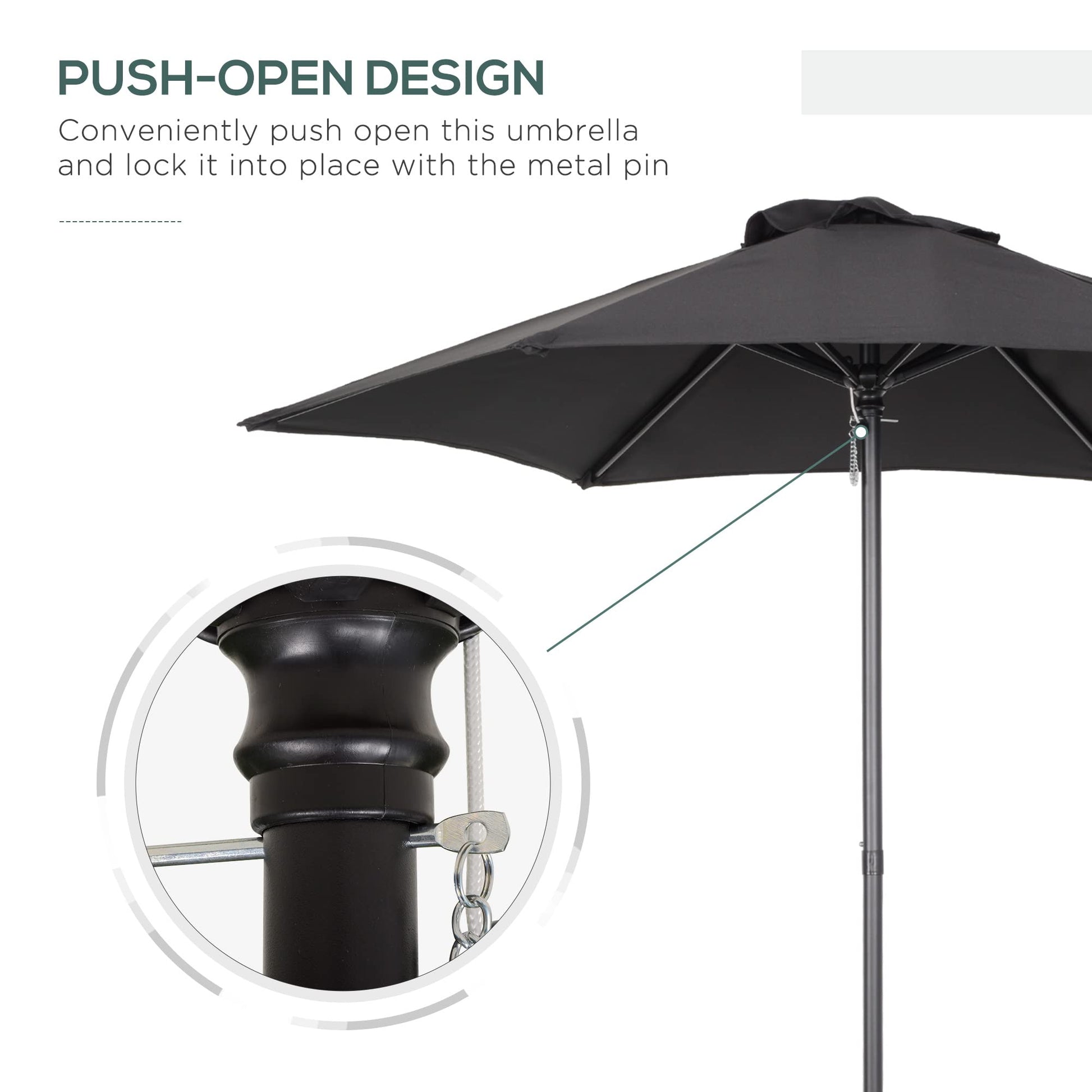 - Push-open design: So easy to operate - push the canopy up and lock it into place with an included pin once the canopy is open. Practically any adult can use this outdoor parasol; you can be covered and shaded for only a few moments.