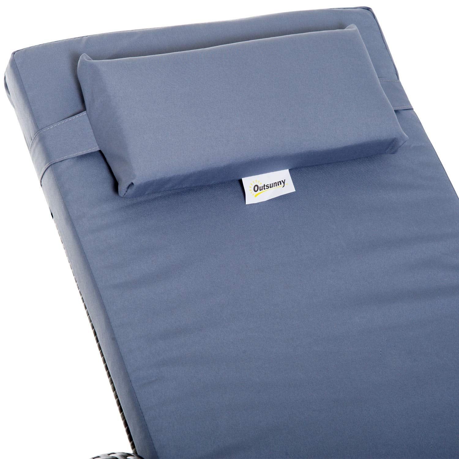 Outsunny 3 Pieces PE Rattan Patio Lounge Chair Set, Outdoor Recliner Lounge Chairs with Wheels, for Outside with Cushions, Headrest, Coffee Table for Garden, Poolside, Grey