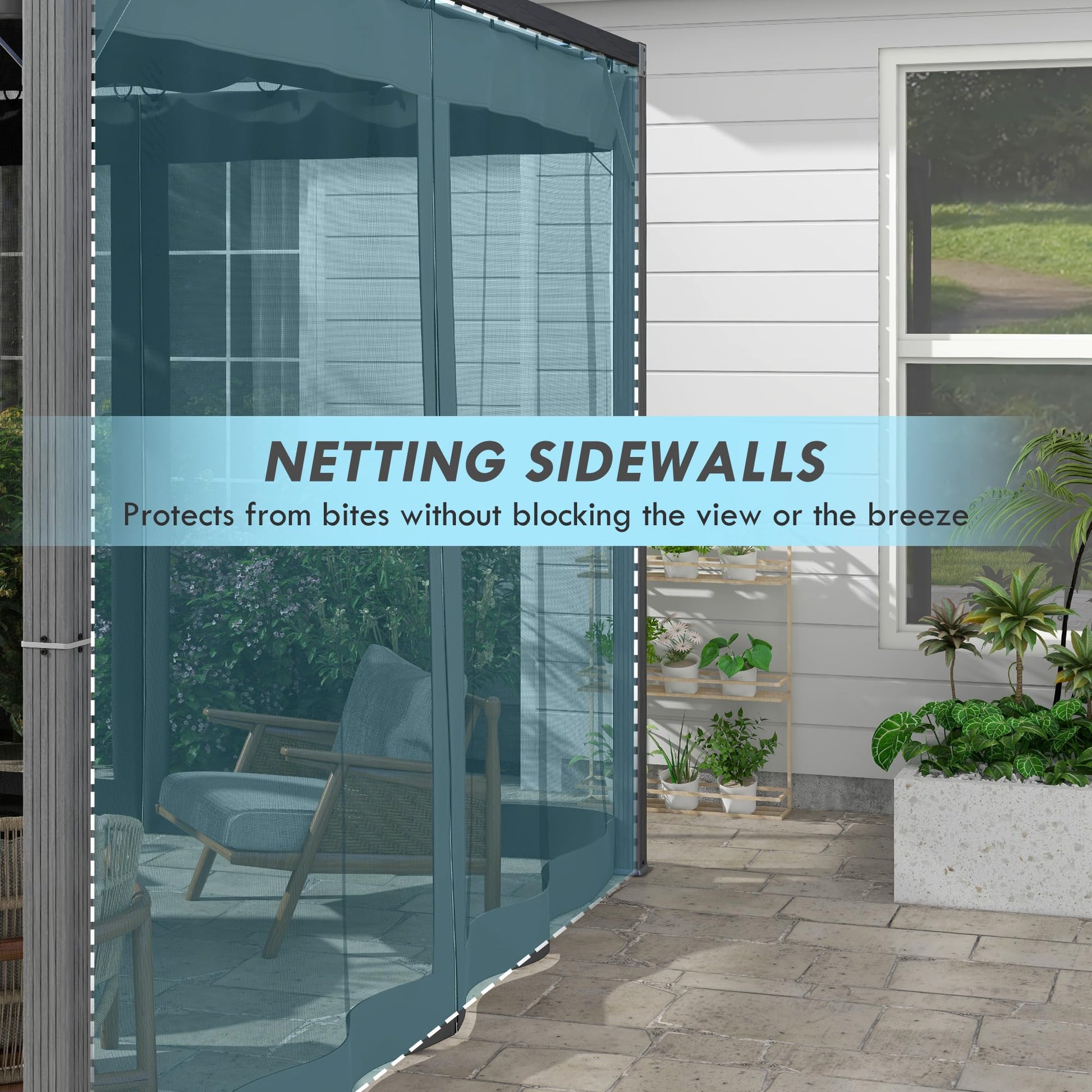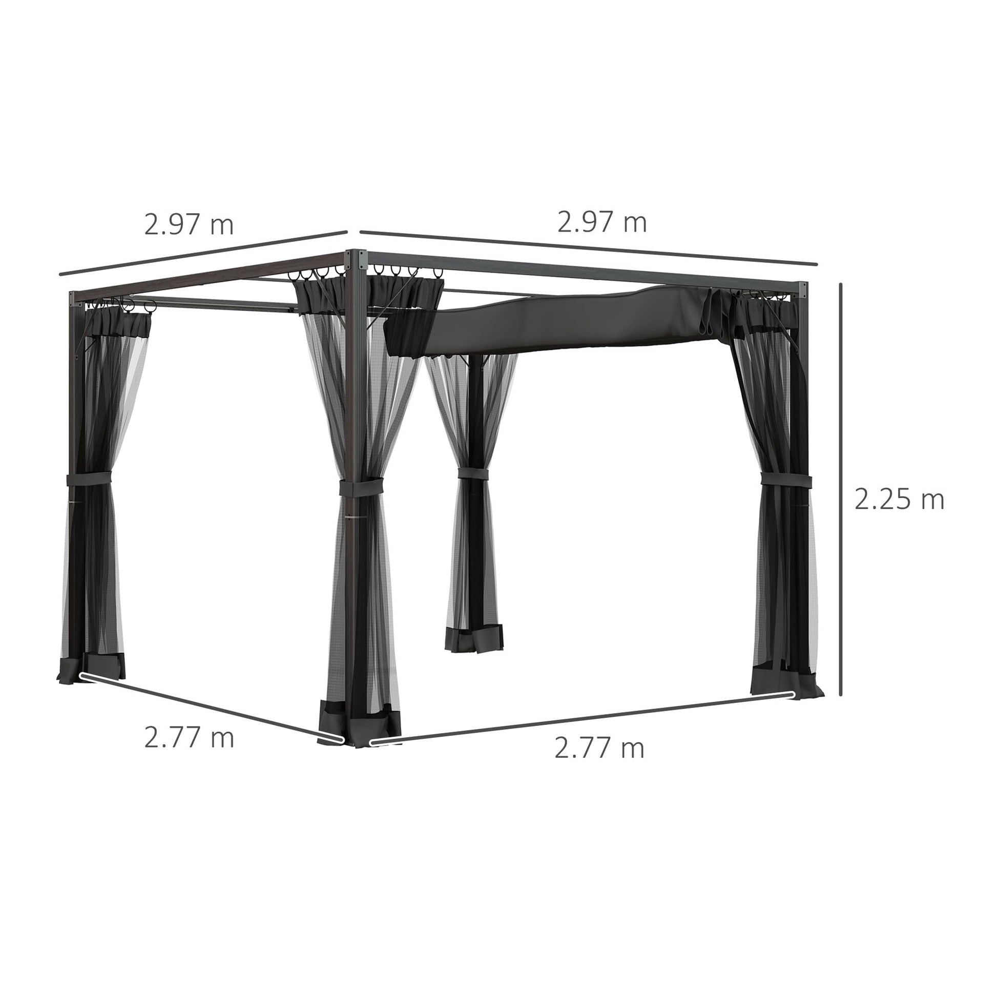 Outsunny 3 x 3 m Pergola with Retractable Roof Canopy and Netting Sidewalls, Aluminium Frame Garden Gazebo Outdoor Sun Shade Shelter for Grill, Patio, Deck, Dark Grey