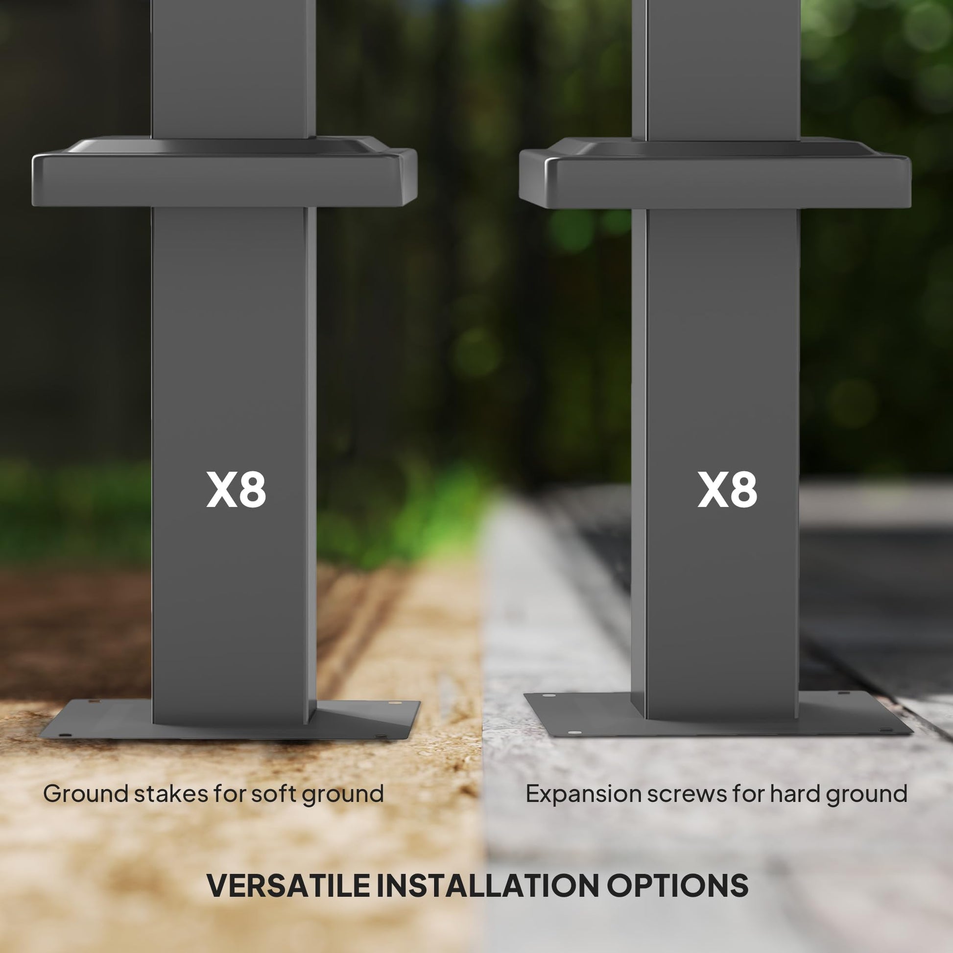 - Accessories: Comes with 8 ground stakes and 8 anchor bolts, making this garden shelter adaptable for installation on various surfaces; cement, grass, or concrete.