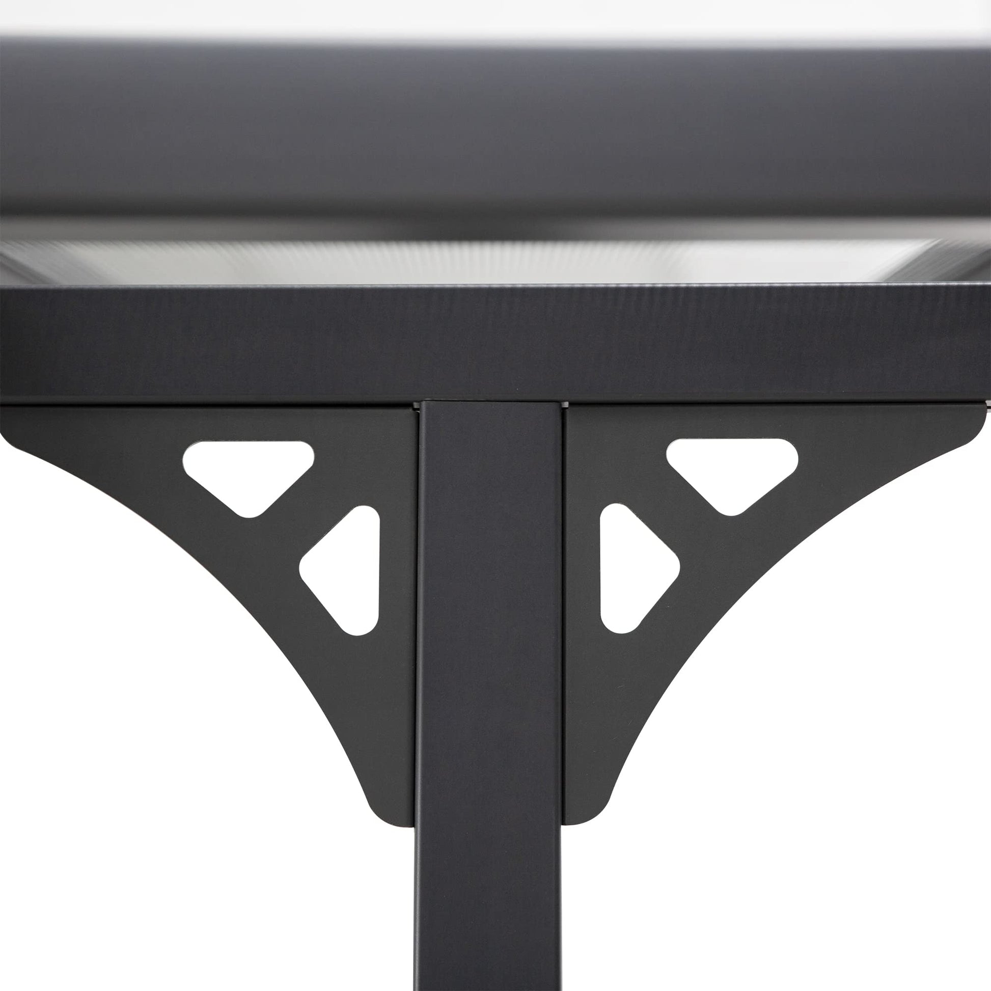 - Polycarbonate roof: Thick plastic panels of the pergola kit protect the inside from direct sunlight for safety in the sun.