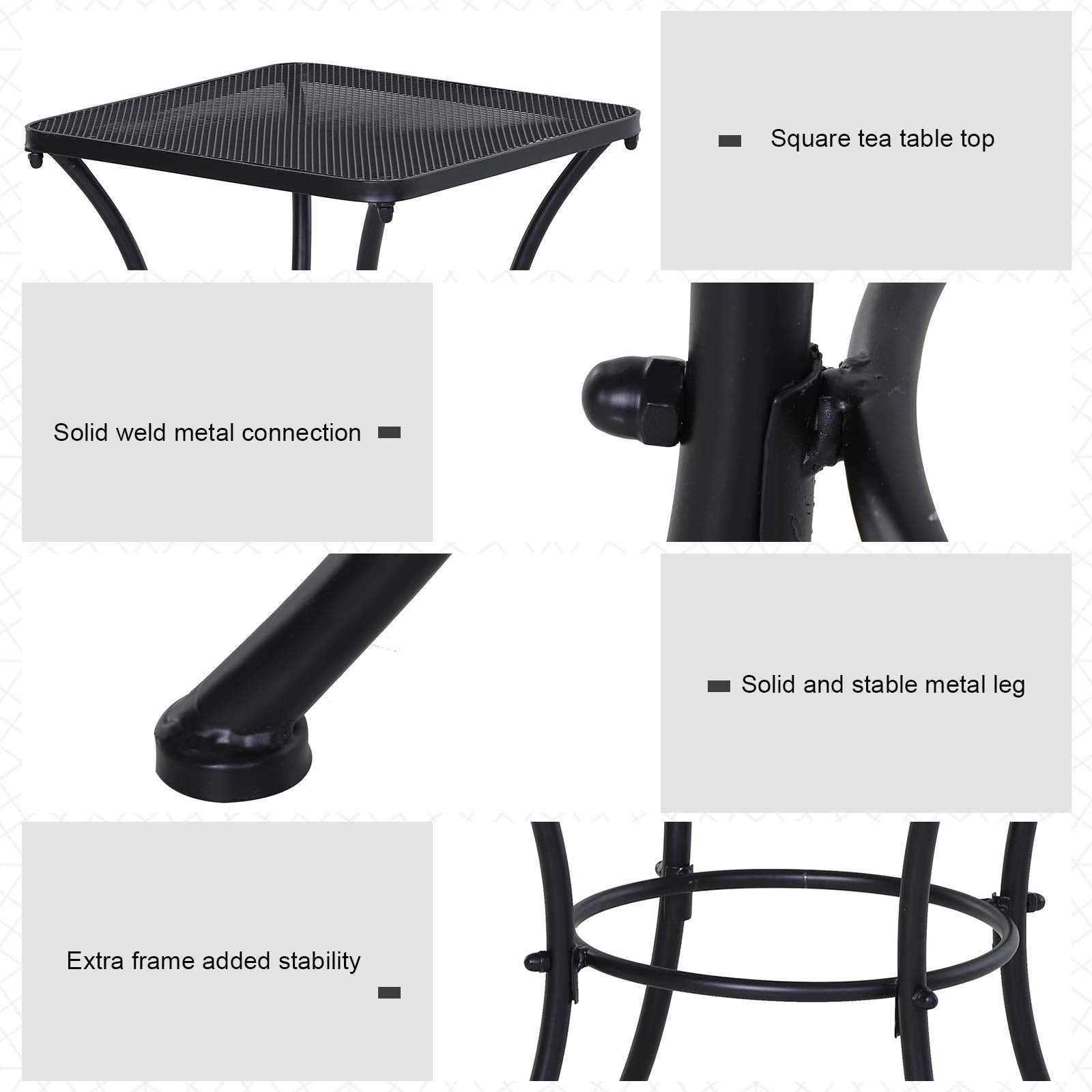 Outsunny 45cm Square Garden Table, Outdoor Metal Bistro Side Desk with Mesh Top, Black