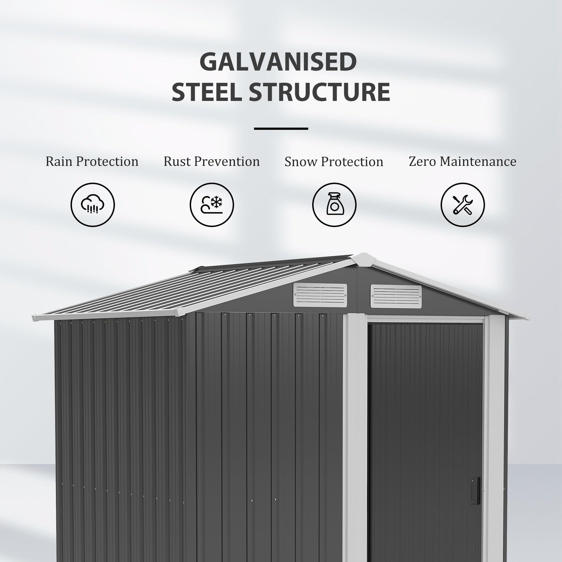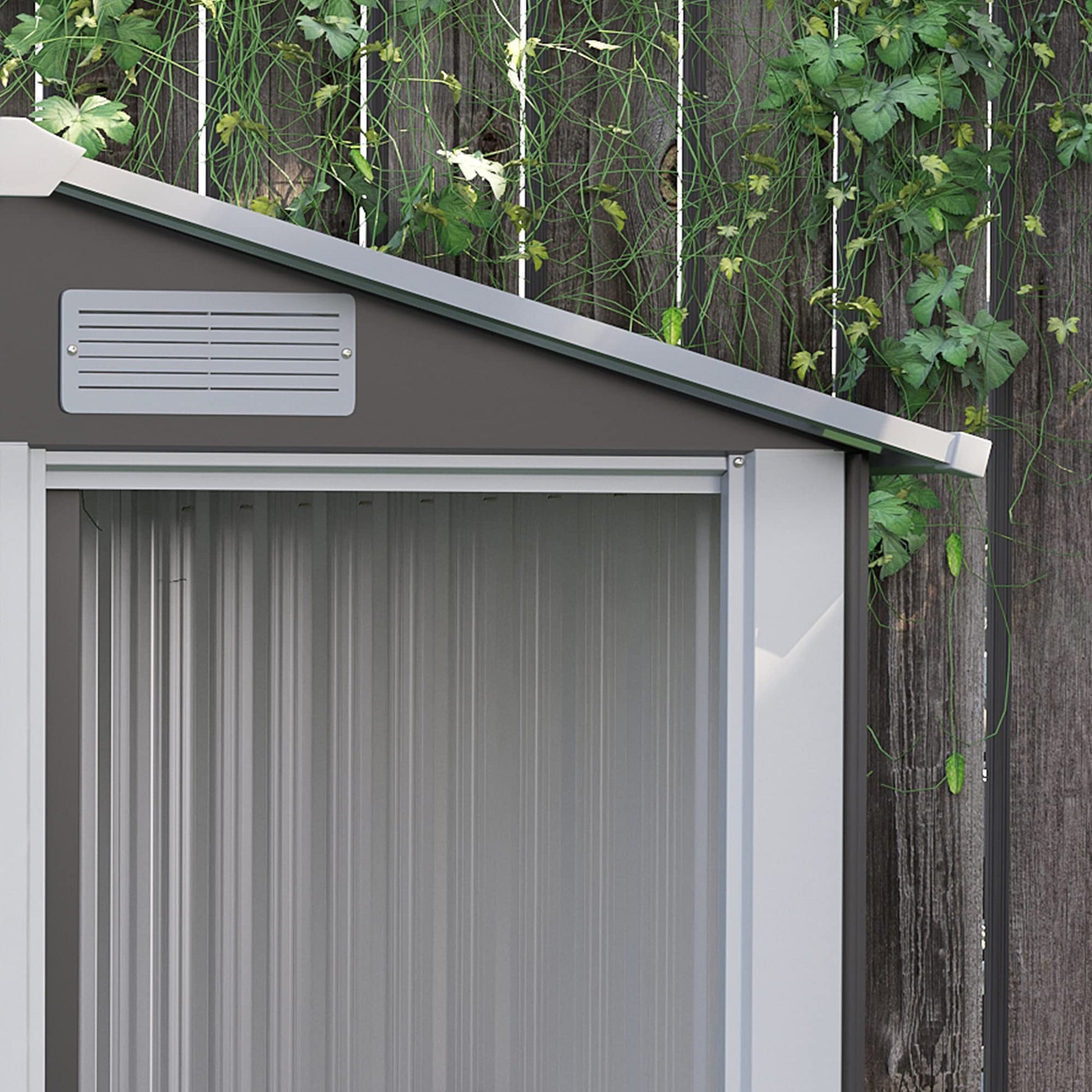 Outsunny 5ft x 4ft Garden Shed, Metal Tool Storage Shed with Sliding Door, Sloped Roof and Foundation Kit for Garden, Patio, Lawn, Grey