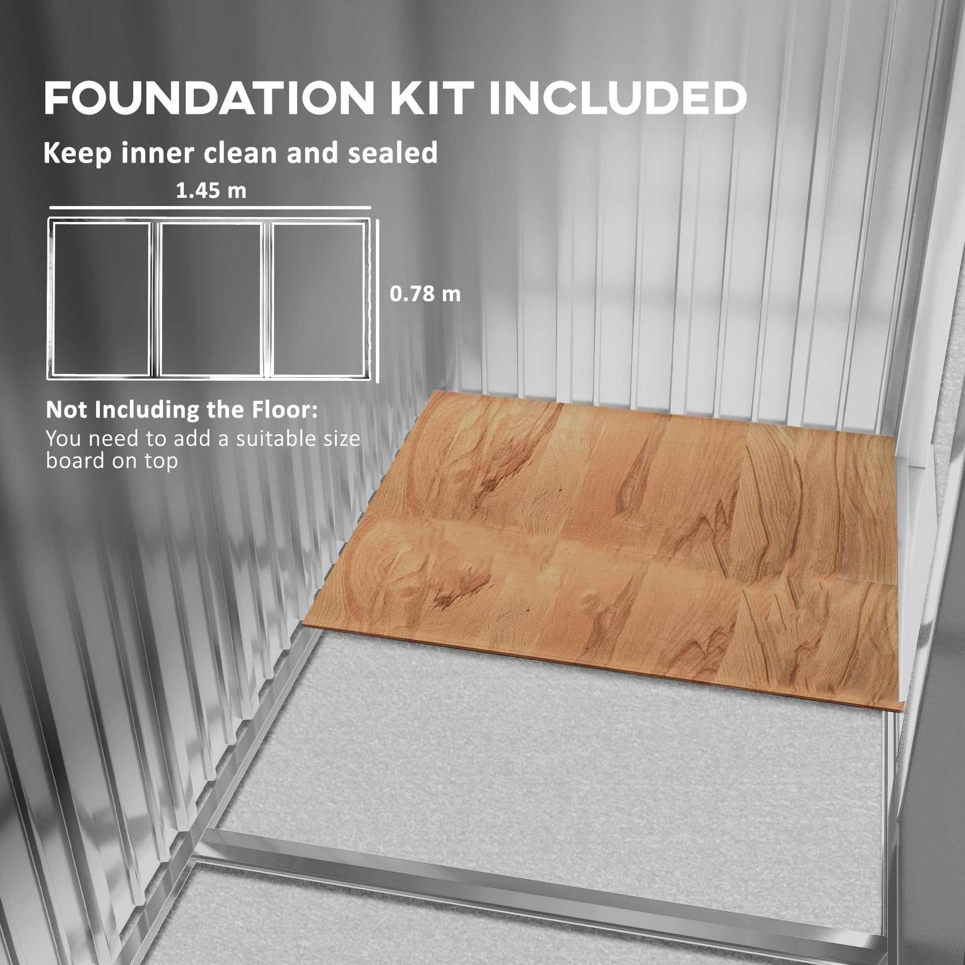 - Corrugated steel structure: A strong metal shed structure, suitable for outdoor use. Foundation kit included, not floor.
