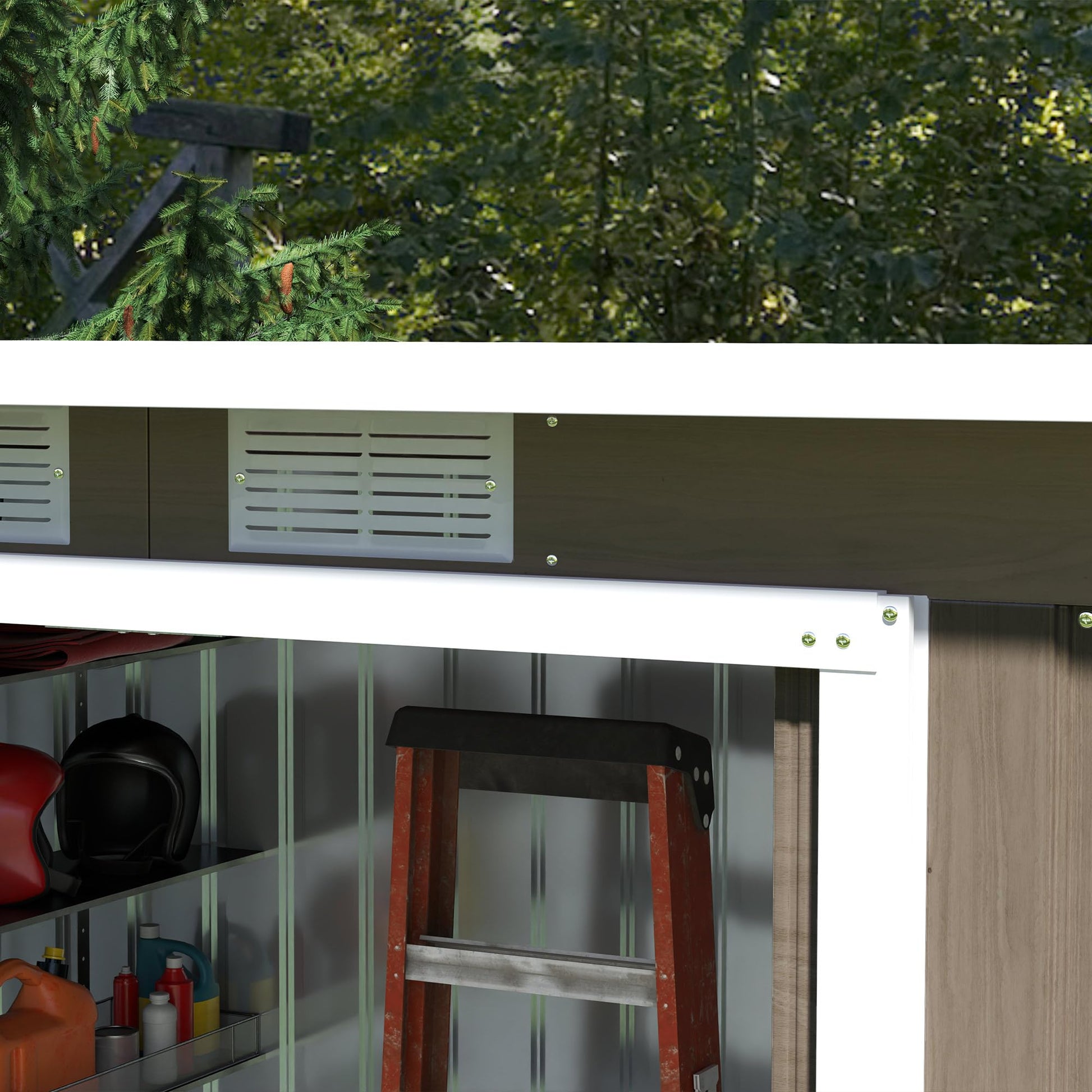 Outsunny 9ft x 4ft Metal Garden Shed, Outdoor Tool House with Foundation Kit, Ventilations and Double Doors, Light Grey Wood Grain