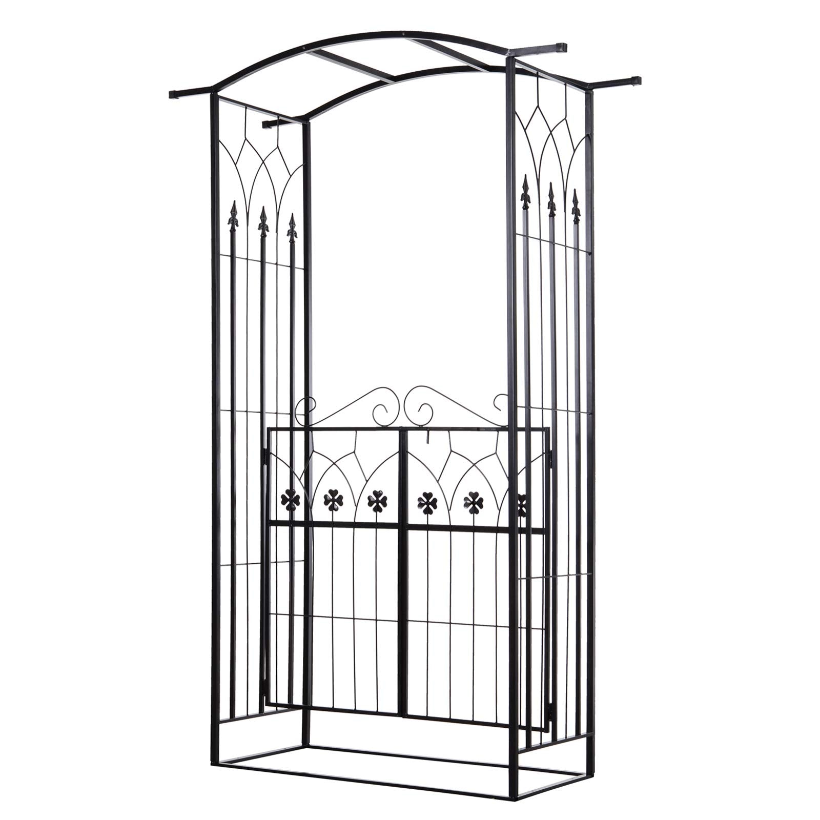 Outsunny Garden Outdoor Entrance Arch with Door Outdoor Patio Decoration for Rose Trellis Arbour Climbing Plant 131L x 49W x 200Hcm