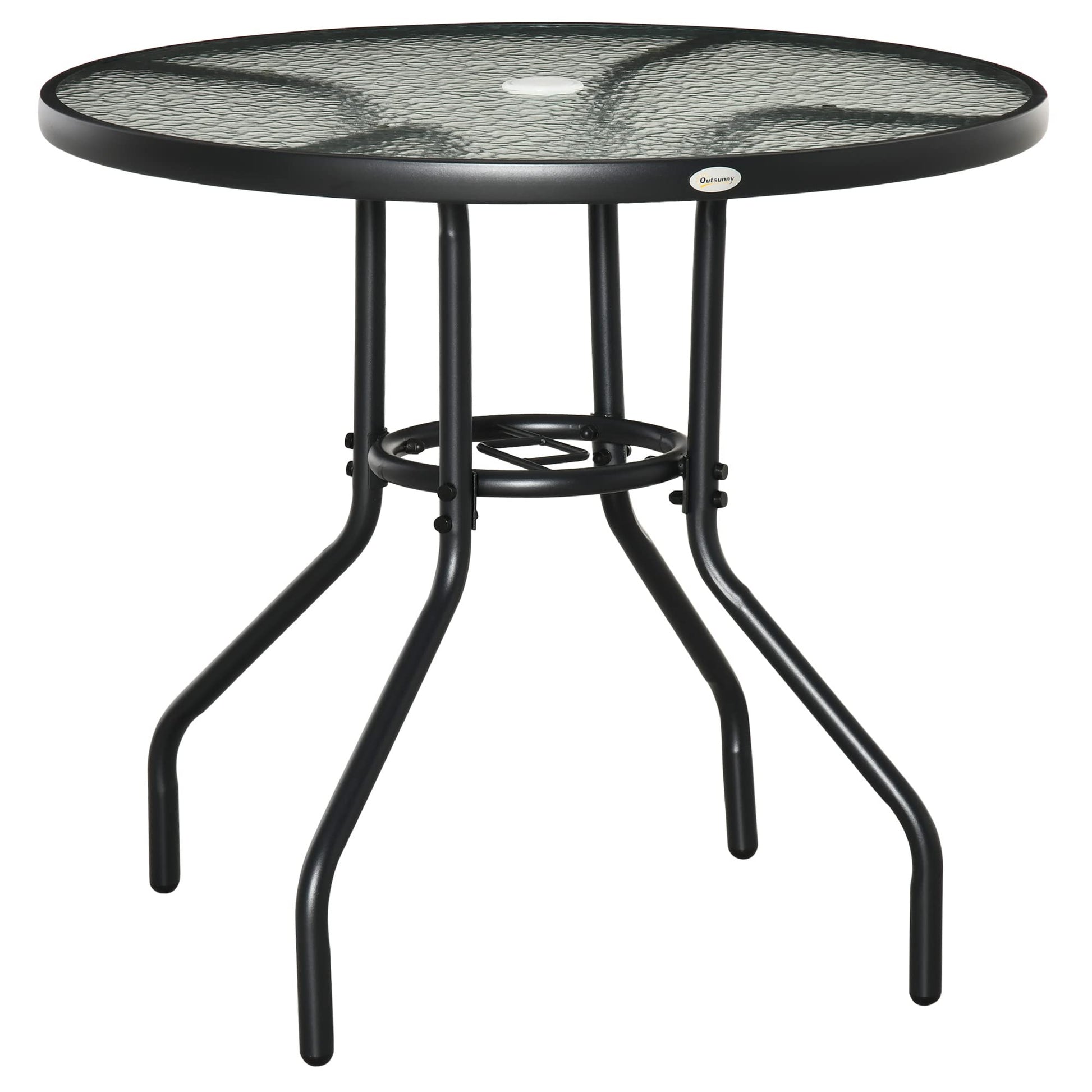 Outsunny Outdoor φ80cm Round Dining Table Tempered Glass Top Steel Frame Bistro Coffee End Side Table Garden w/Parasol Hole