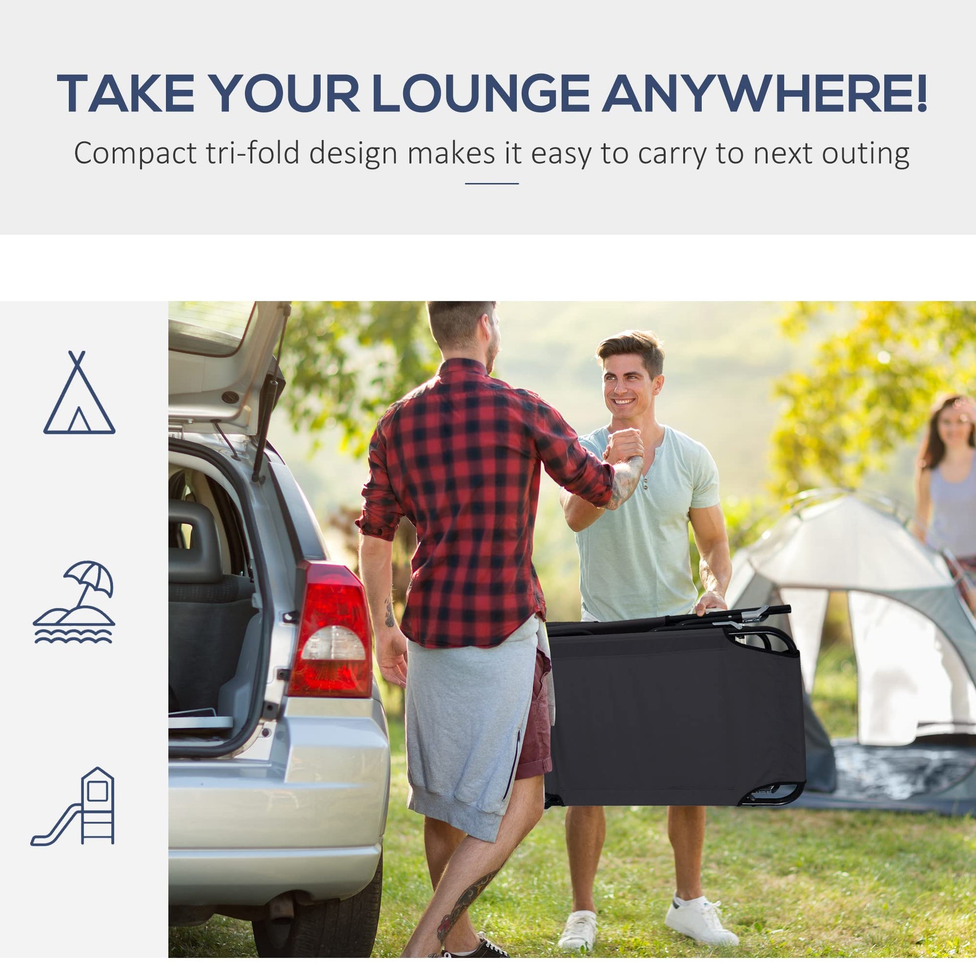 Outsunny Outdoor Folding Sun Lounger with Face Hole, 4 Level Adjustable Backrest Reclining Garden Lounger, Garden Recliner Sunbed with 600 D Oxford Cloth Seat and Pillow for Beach, Black