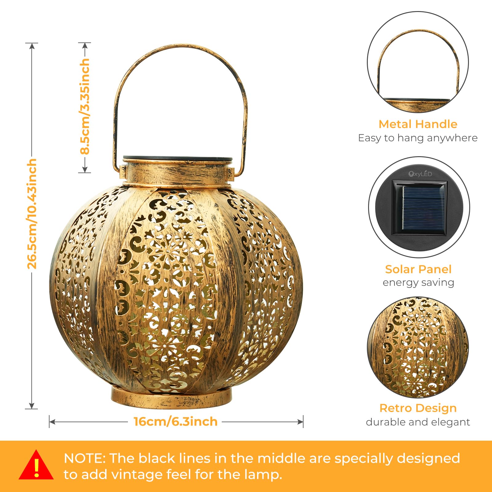 - 【Decorative and Functional】Why give up beauty for practicality? The OxyLED moroccan solar lanterns for the garden are retro, elegant and effective. The solar lantern provides some much-needed illumination, casting gorgeous, whimsical pattern. Garden lanterns is a great decorative touch for gardens, backyards, driveways, pathways, and even campin