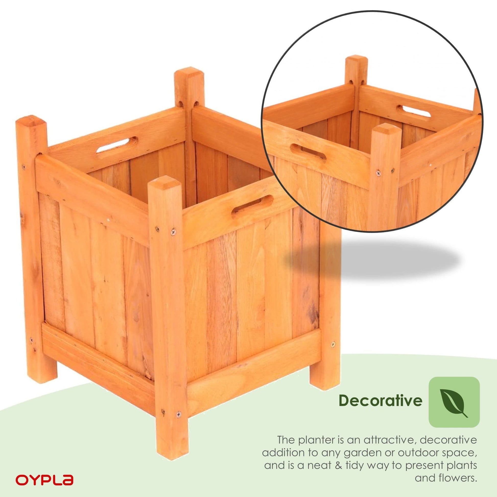 Oypla Garden Wooden Square Flower Planter Ornamental Plant Pot