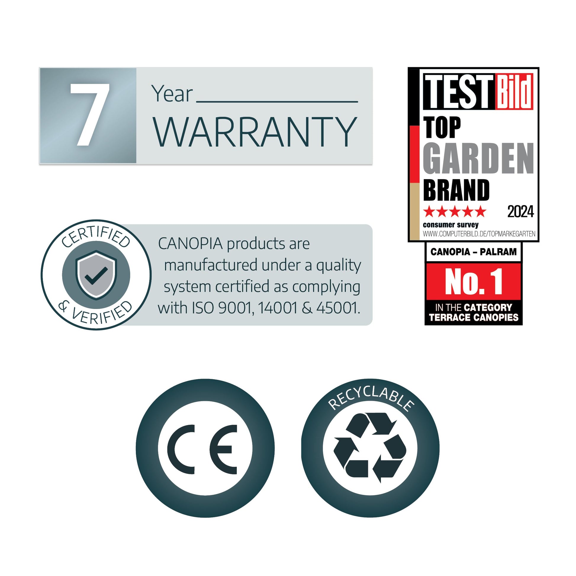 - Rust resistant,powder coated frame made of heavy duty aluminium and laser cut galvanised steel connectors