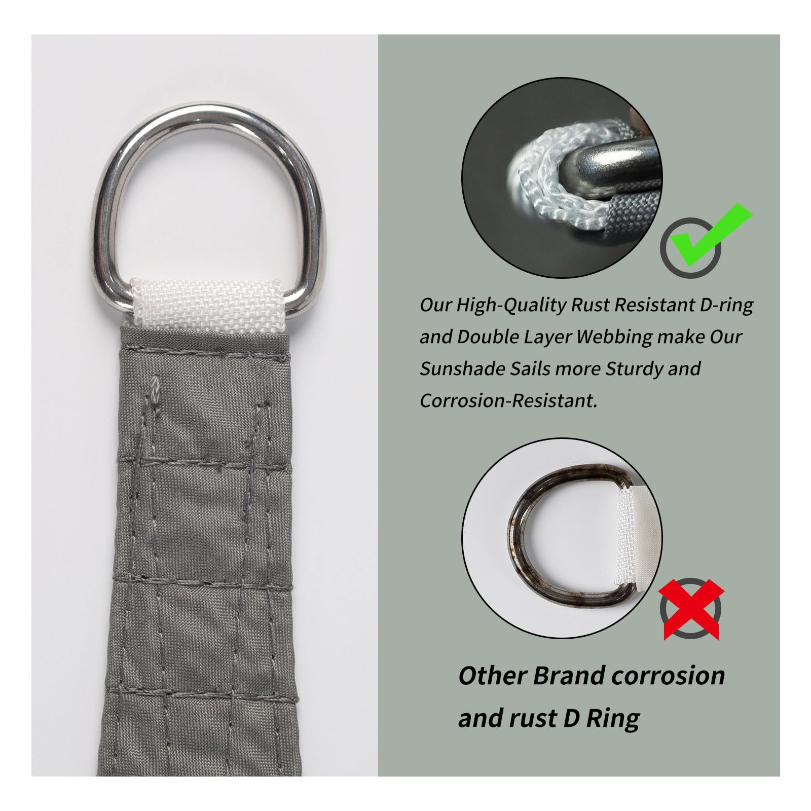 - 【Double Layer Webbing】 Oxford material, PU coated PES canvas with a weight of 160gsm, durable resistant to damage and moisture.High-Quality Rust Resistant D-ring and Double Layer Webbing make Our Sunshade Sails more Sturdy and Corrosion-Resistant. It can be used for sun protection in garden pools, tables, chairs, and furniture.