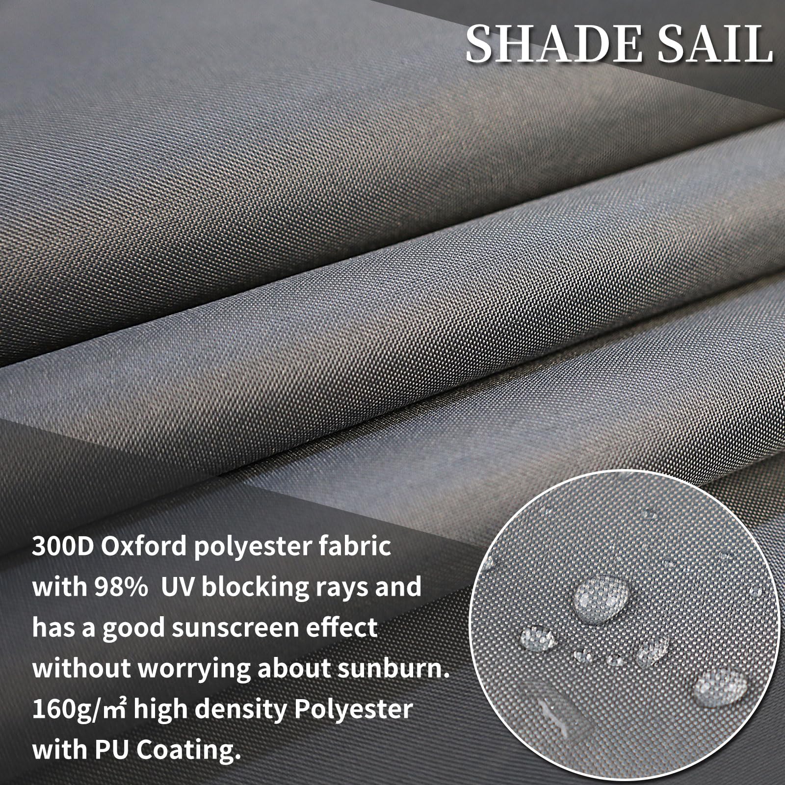 - 【300D Oxford Material】 The sunshade sail is made of 300D Oxford polyester fabric, which can block 98% of UV rays and has good sun protection effect.