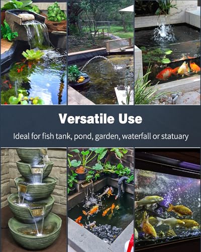 - Reliable Construction: The water fountain pump is well constructed with a 30 W highly efficient and energy-saving motor, a UL-certified plug and a strong ceramic shaft and bearing. Durable to endure running 24/7.