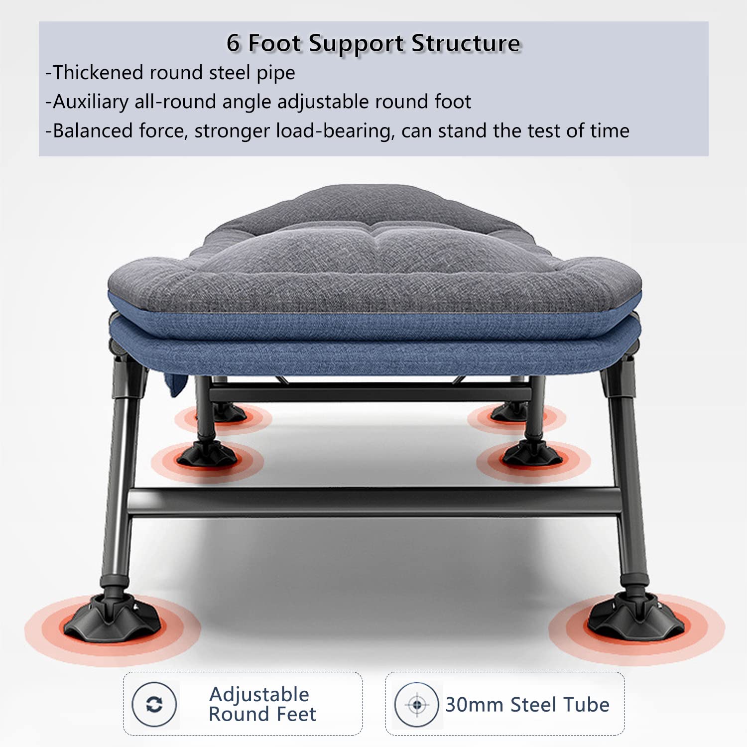 - 1.【High Quality Chairs】: This fishing bedchairs with 6 all-round angle adjustable round foot, adding the camp cot to best stability and carrying capacity. The reclining garden chairs fabric is cotton and the interior is filled with highly breathable polyester & sponge.2.【Adjustable Design】: Our garden chairs reclining has a 5-position adjustable function. Can change from a flat bed to a recliner, allowing you to find the best sleeping angle, ensures that there is no more back, neck or shoulder pain, and perfectly fits body curve and ensure a more comfortable & healthy sleep.3.【Multifunction Reclining Sun Lounger 】: This carp fishing chair comes with a spacious side storage pocket to store your water bottles, phones, keys, sunglasses, books, and more.4.【Multi Scene Use】: The garden lounger available for sitting, reclining, and sleeping. Perfect for camping cribs, military cribs, travel cribs, outdoor recliner chair, relaxing at home or lounging at the office lounging. Our camping cots can ac you with every exciting travel.5.【Lightweight & Portable】: No assembly required. This folding sun lounger opens in seconds. The camp bed is easy to transport and store, and fits nicely in most car trunks and under tables. The cot for camping measures 82.6'' x 18.5'' x 26.4'' (L x W x H).Unit Count: 1.0Item Shape: RectangularTarget Gender: unisexCare Instructions: Wipe Clean