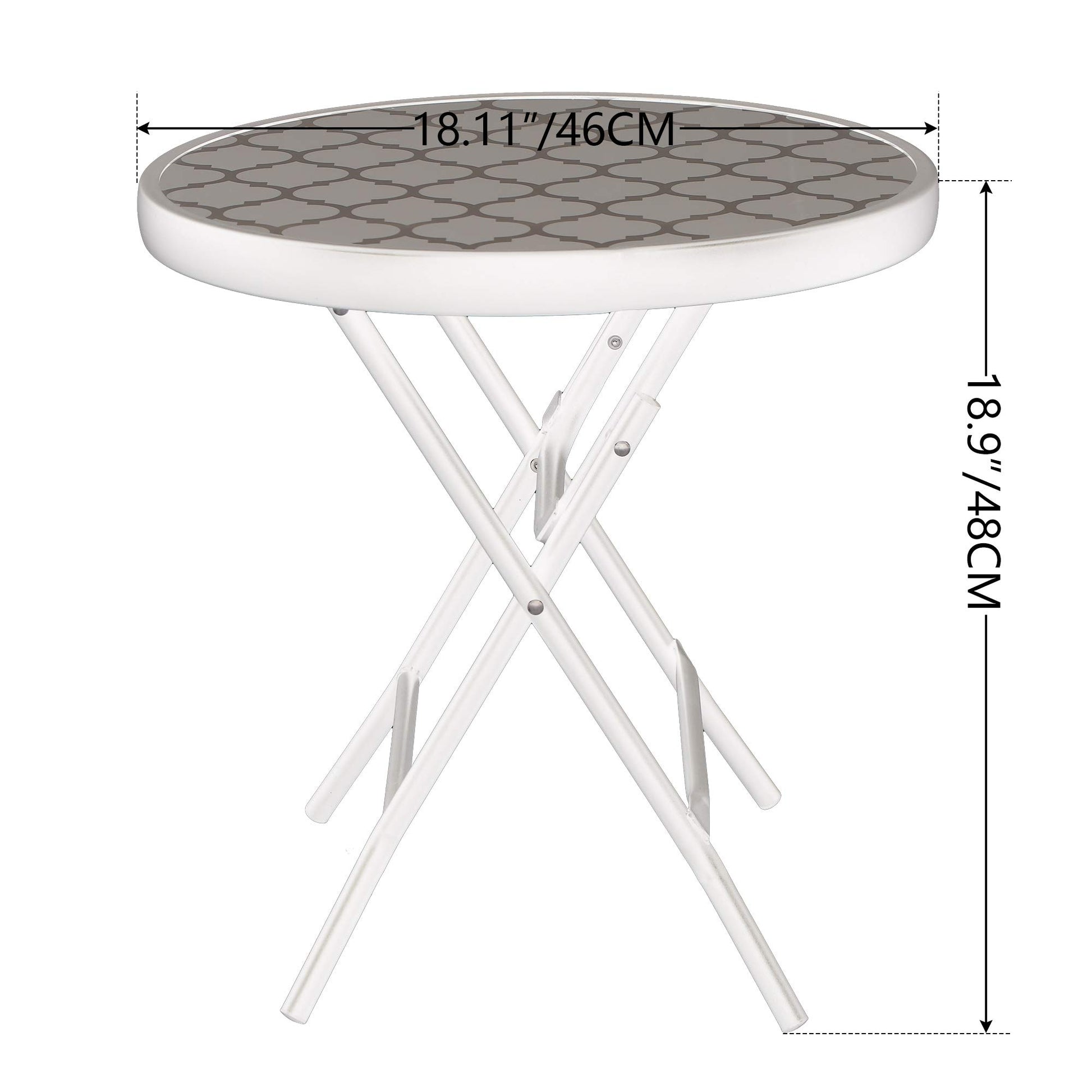 - Foldable: This side table can be folded up to save space. --Overall dimension: 46L x 46W x 48H cm. The garden table does not need to be assembled. Just unfold to use it. It is easy to carry and store with lightweight